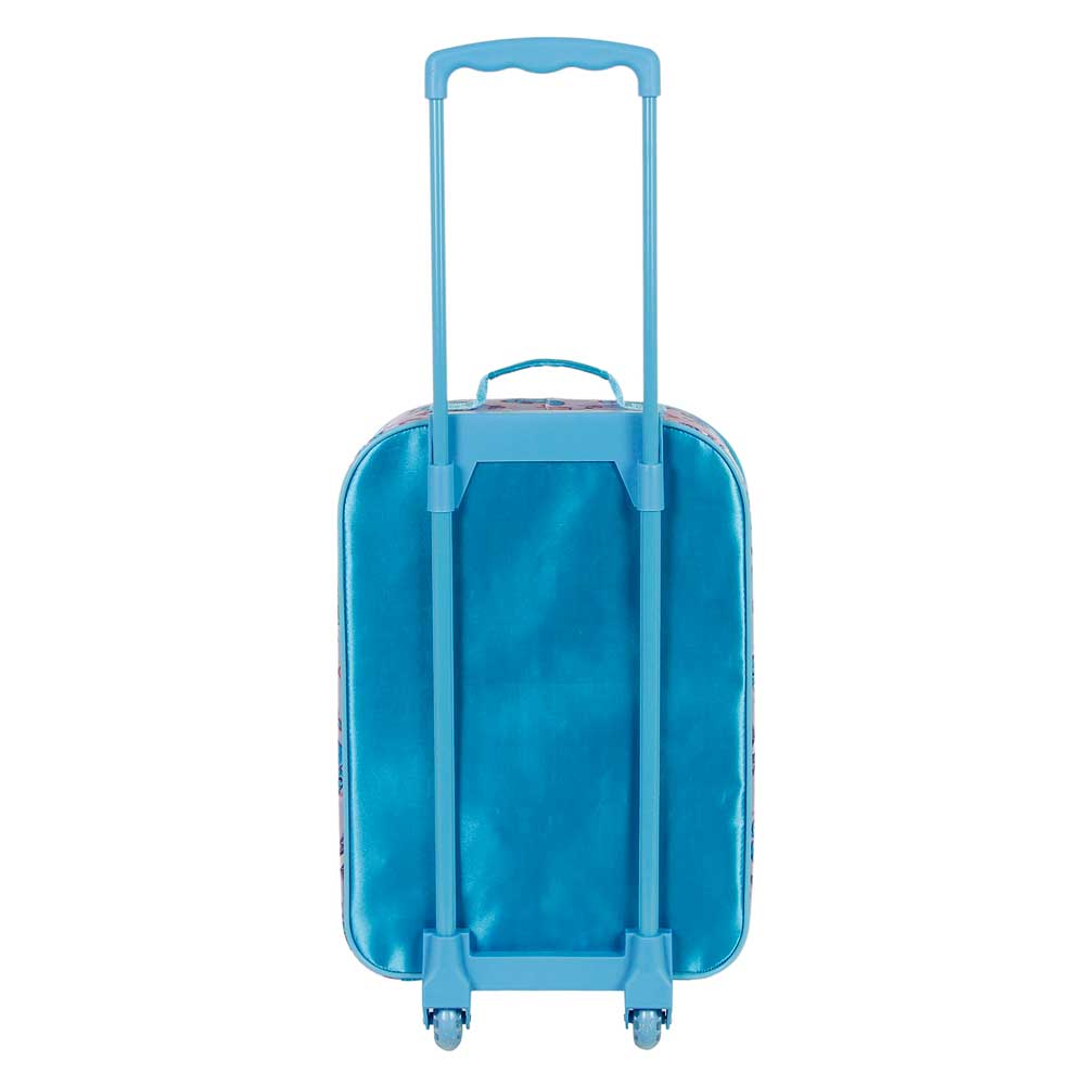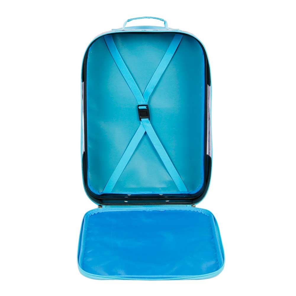 Hand luggage for children with two wheels for easy movement. Closed with zipper and inner elastic bands to hold the clothes.