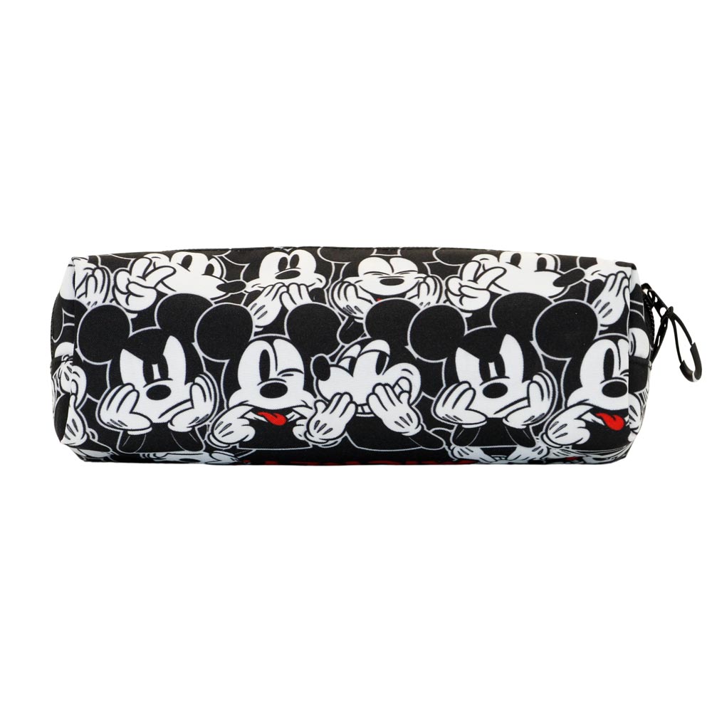 Square profile pencil case with a single compartment and zippered closure.