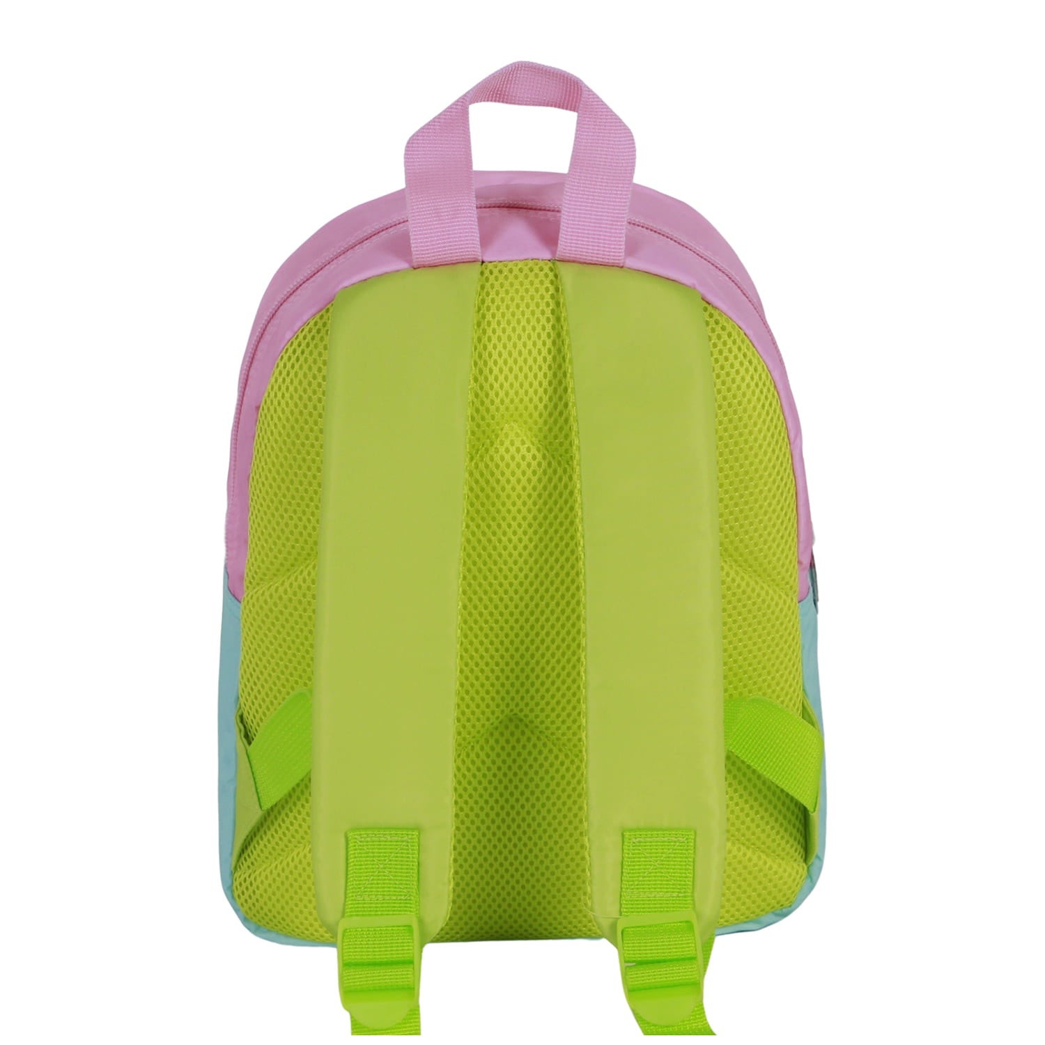 Lightweight preschool backpack with zippered compartment. Includes front pocket and breathable padded back pocket for comfort.