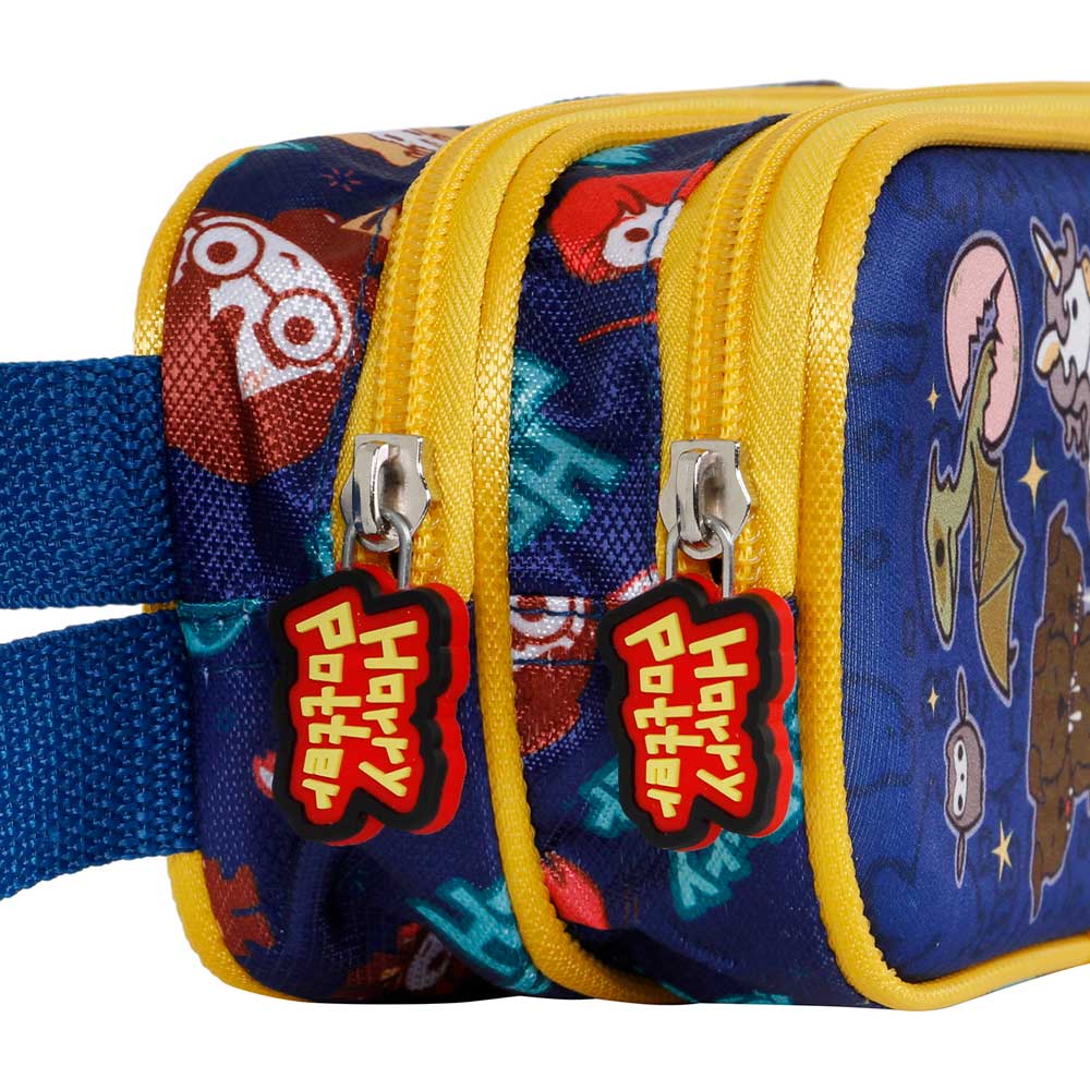 Double compartment pencil case with zipper and inner lining. Front embossed design.