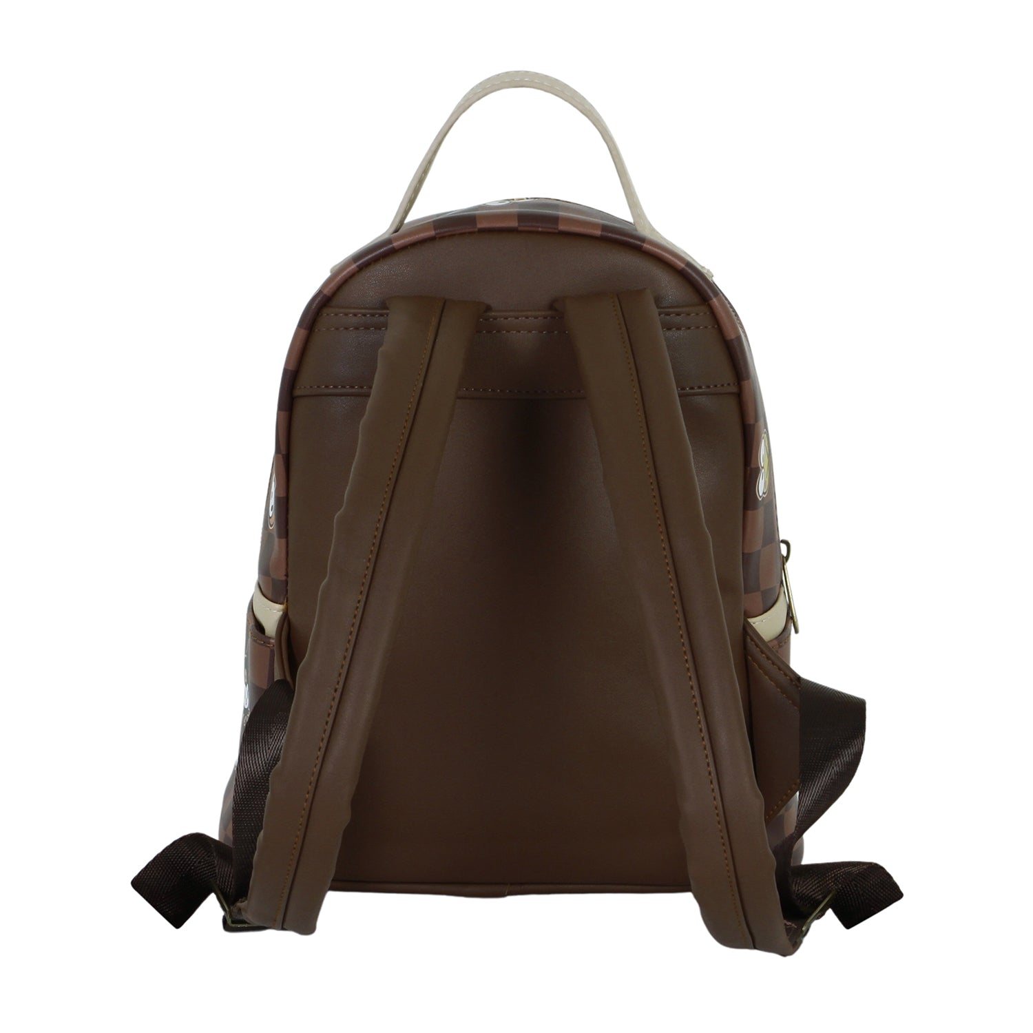 Urban backpack with main compartment and front zippered pocket. Two open side pockets and inner lining.