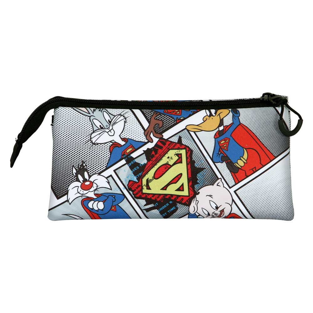 Rectangular pencil case with three compartments for your belongings. The two outer pockets open with the main zipper and the third with its own zipper.