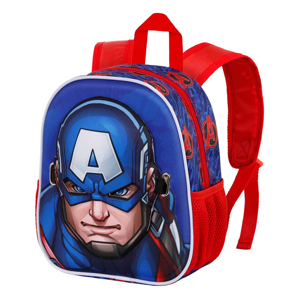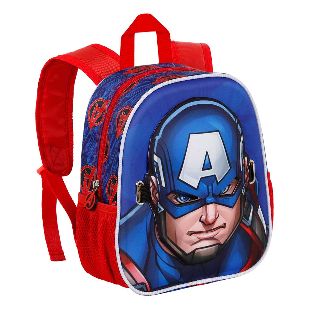 Preschool backpack with 3D front relief. Includes a removable face mask of the character for dressing-up. Main compartment with zipper and inner lining. Two mesh side pockets.