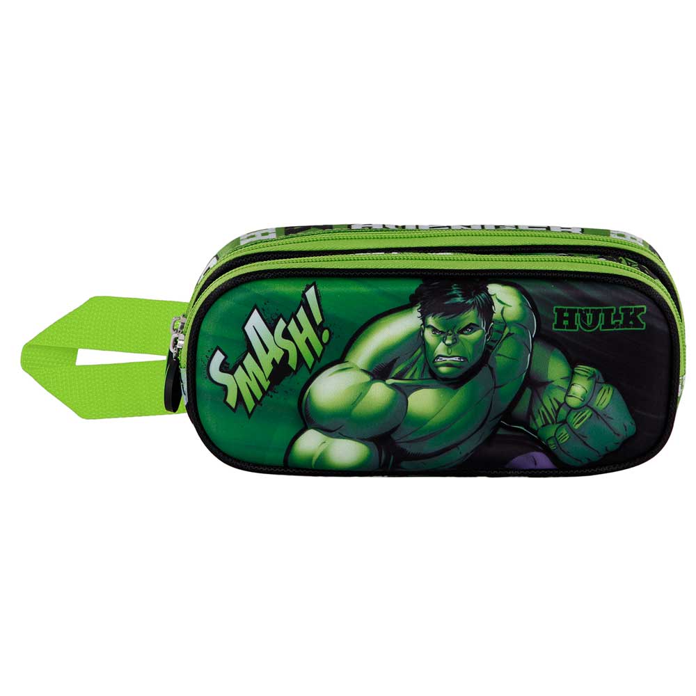 Double compartment pencil case with zipper and inner lining. Front embossed design.
