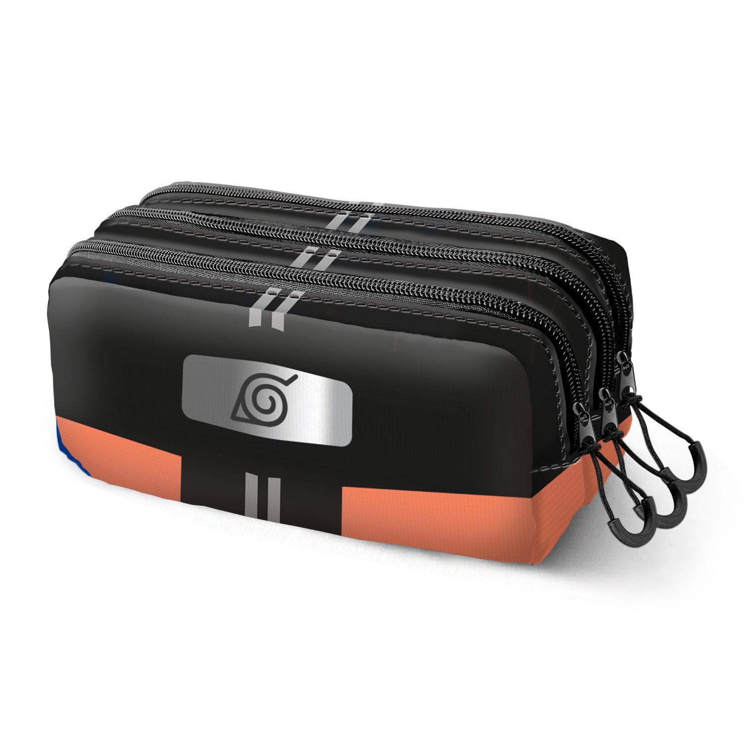School pencil case with 3 zippered compartments. Made of high resistance material (Ripstop). Interior lining and back strap for trolley transport.