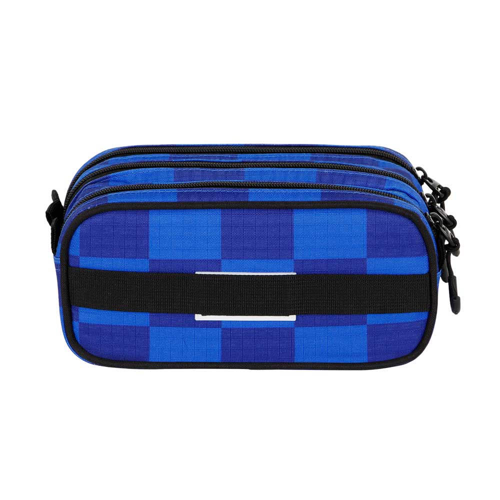 School pencil case with 3 zipped compartments. Made of highly resistant material (Ripstop). Inner lining and back strap for transport on a trolley.