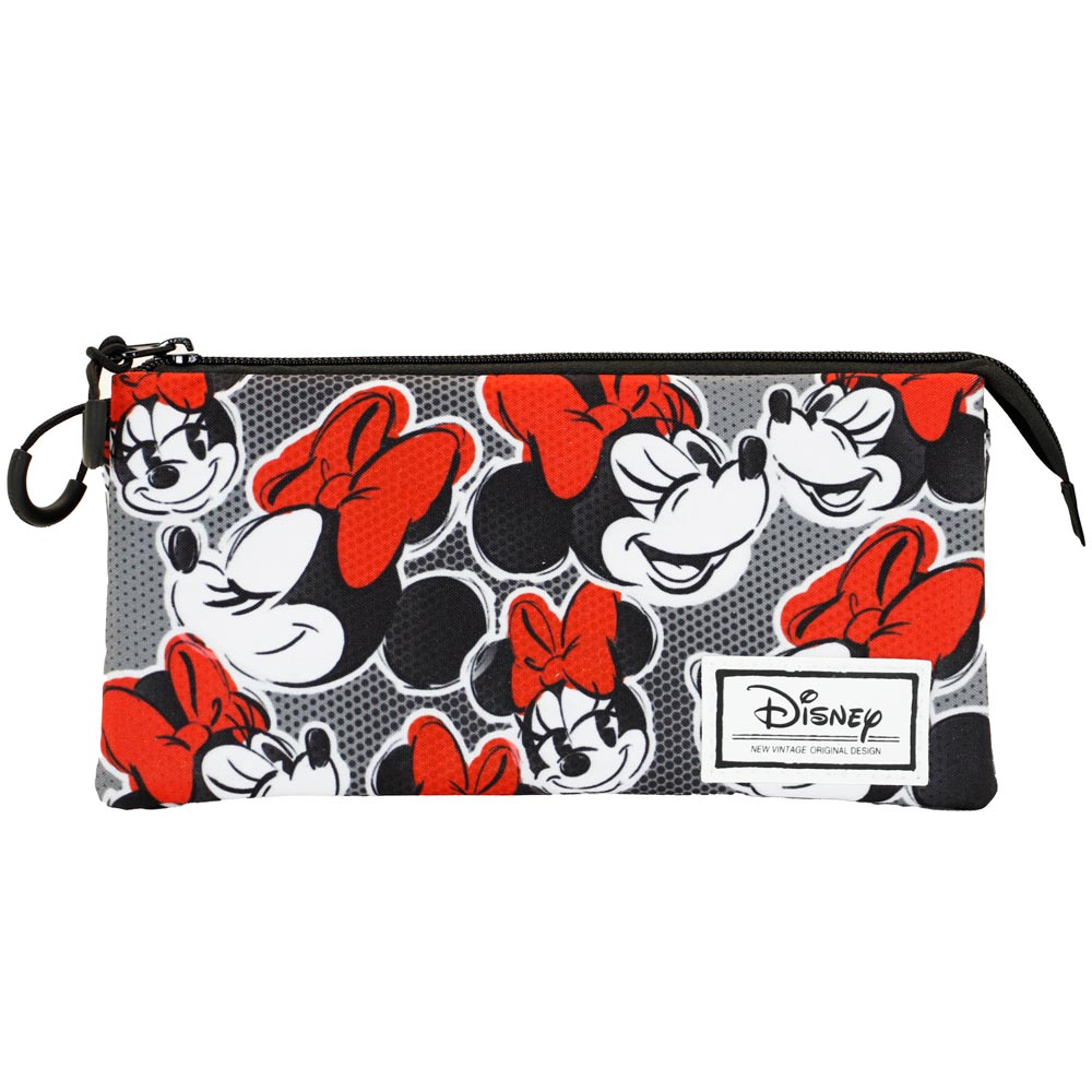 Trousse à crayons rectangulaire avec trois compartiments pour vos effets personnels. Les deux poches extérieures s'ouvrent par la fermeture à glissière principale et la troisième par sa propre fermeture à glissière.