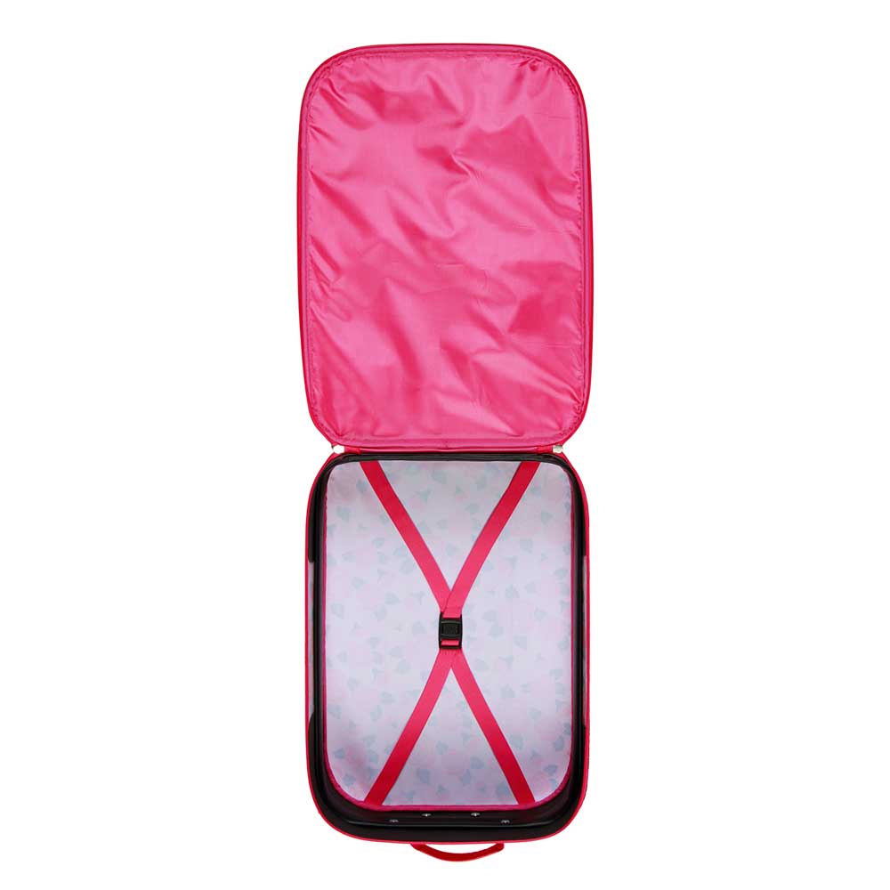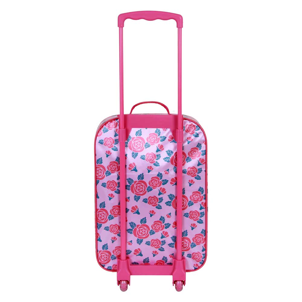 Bagage à main pour les enfants avec deux roues pour un mouvement facile. Fermé par une fermeture éclair et des bandes élastiques intérieures pour maintenir les vêtements.