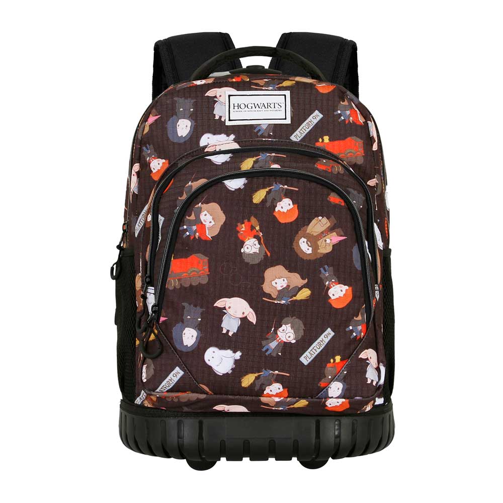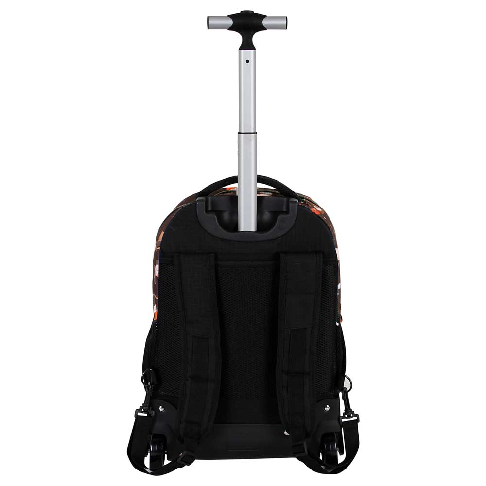 Sac à dos scolaire avec 2 roues intégrées. Deux compartiments, une poche frontale et deux poches latérales en filet. Intérieur doublé avec poche rembourrée pour appareils électroniques. Bretelles pour porter comme un sac à dos.