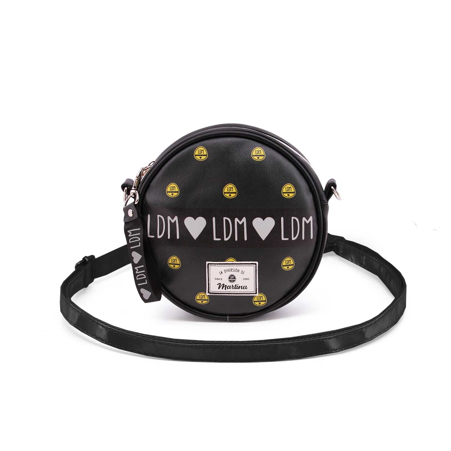 Sac à bandoulière rond. Compartiment unique avec fermeture éclair sur le dessus. Bandoulière réglable entre 50 cm et 100 cm.