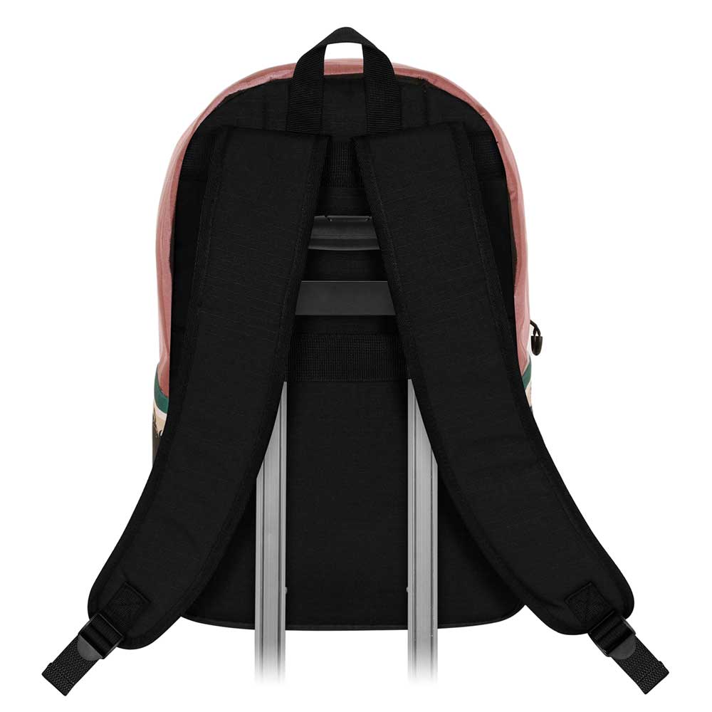 Sac à dos avec un seul compartiment et une poche frontale. Corps en matériau haute résistance (Ripstop), repoussant les liquides en quantités modérées. Doublure intérieure avec poche pour appareils électroniques. Bretelles matelassées réglables et sangle dorsale adaptable au chariot.