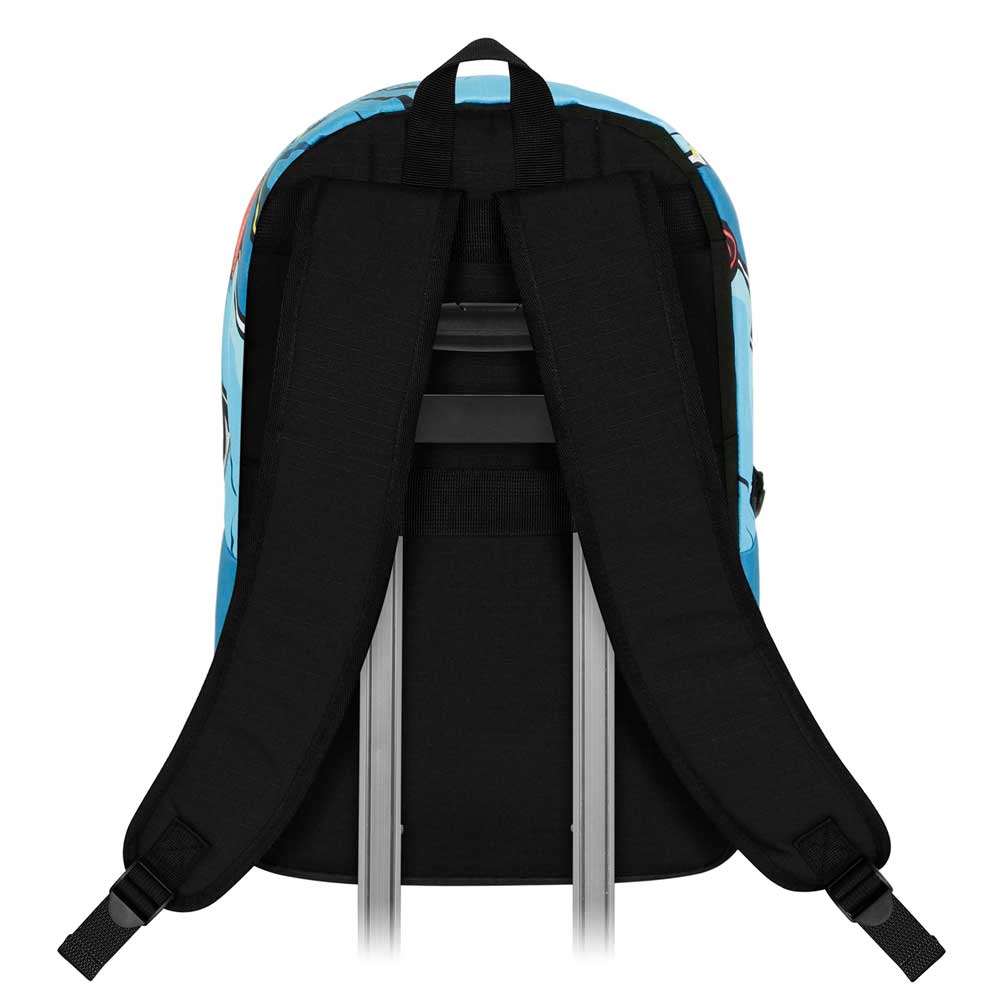 Sac à dos avec un seul compartiment et une poche frontale. Corps en matériau haute résistance (Ripstop), repoussant les liquides en quantités modérées. Doublure intérieure avec poche pour appareils électroniques. Bretelles matelassées réglables et sangle dorsale adaptable au chariot.