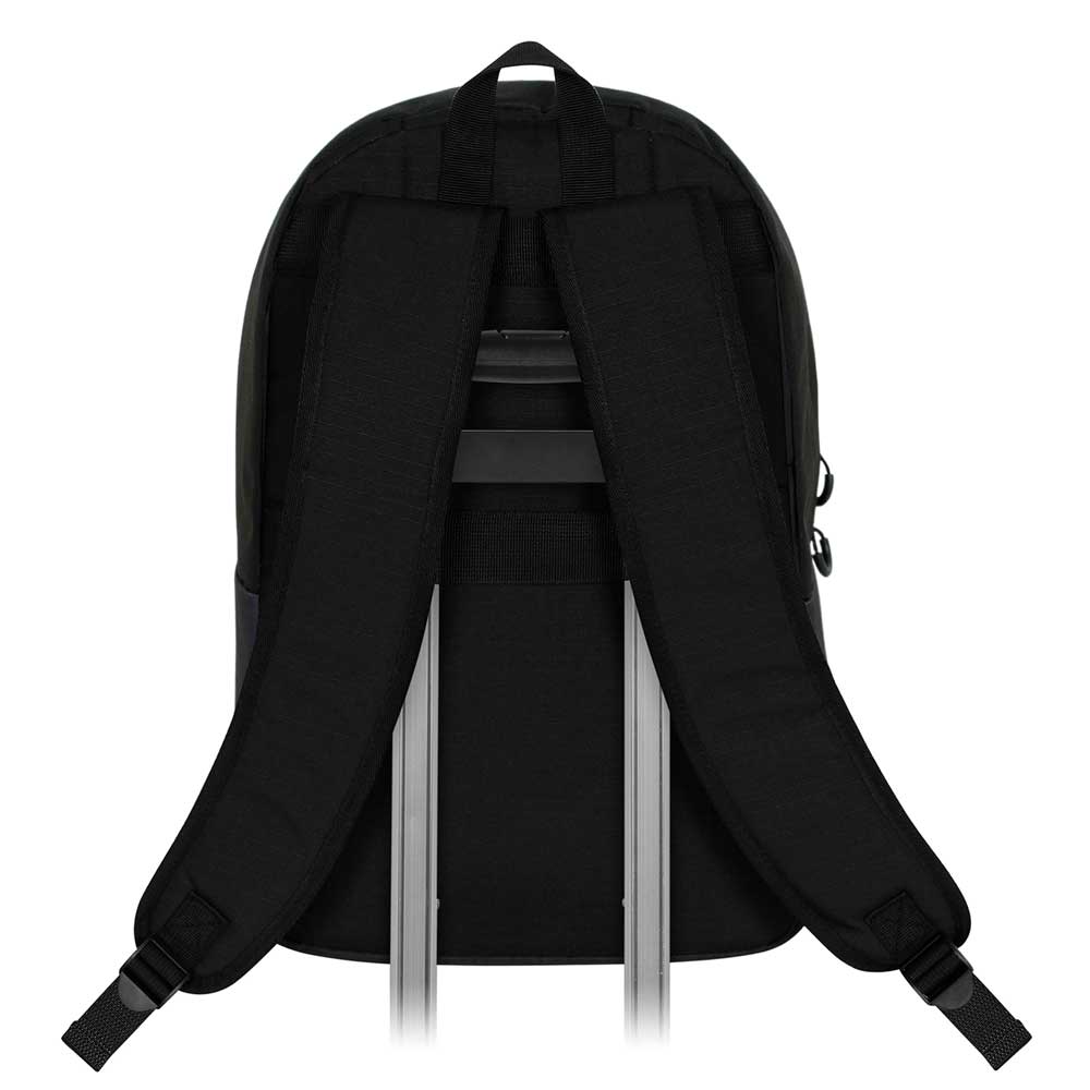 Sac à dos avec un seul compartiment et une poche frontale. Corps en matériau haute résistance (Ripstop), repoussant les liquides en quantités modérées. Doublure intérieure avec poche pour appareils électroniques. Bretelles matelassées réglables et sangle dorsale adaptable au chariot.