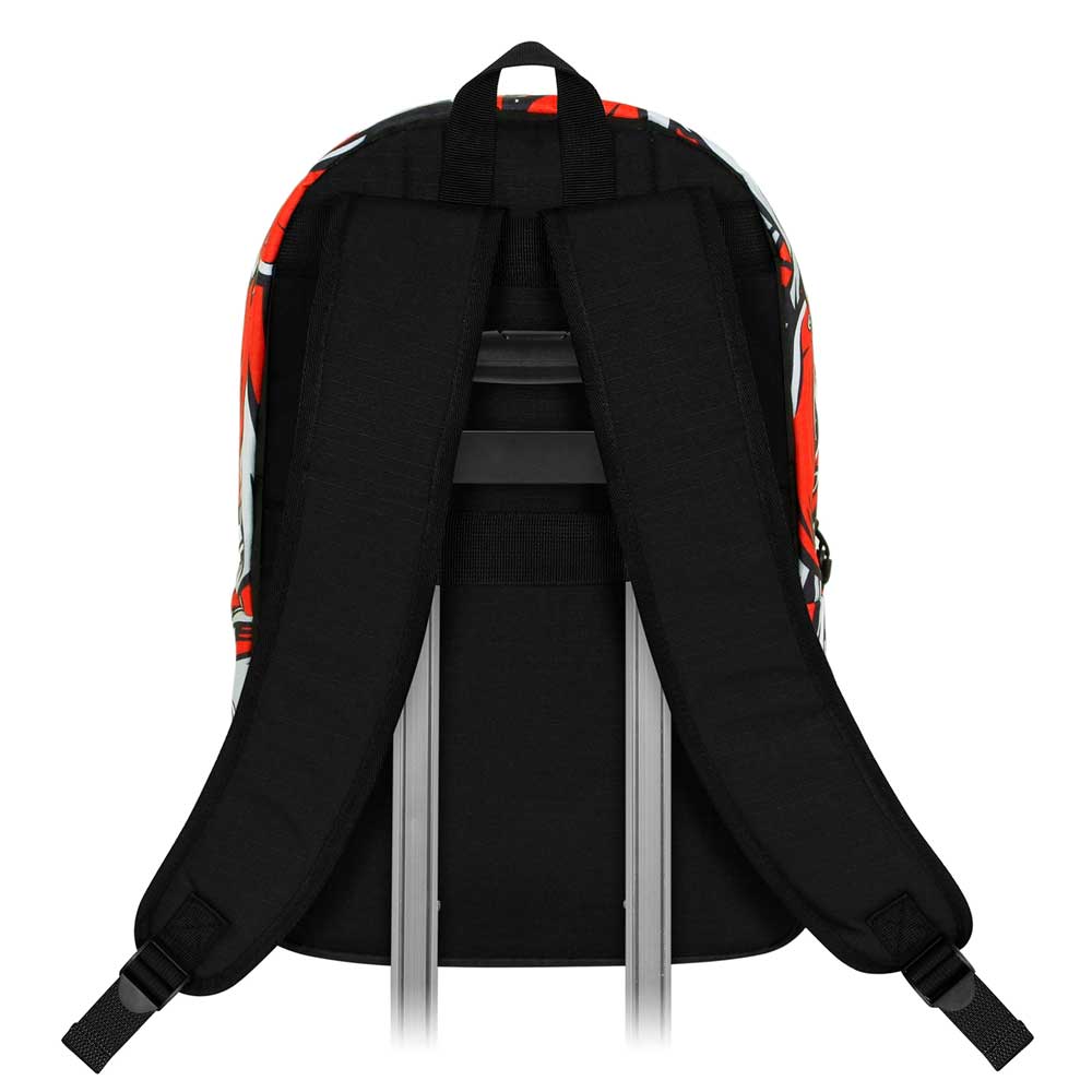 Sac à dos avec un seul compartiment et une poche frontale. Corps en matériau haute résistance (Ripstop), repoussant les liquides en quantités modérées. Doublure intérieure avec poche pour appareils électroniques. Bretelles matelassées réglables et sangle dorsale adaptable au chariot.