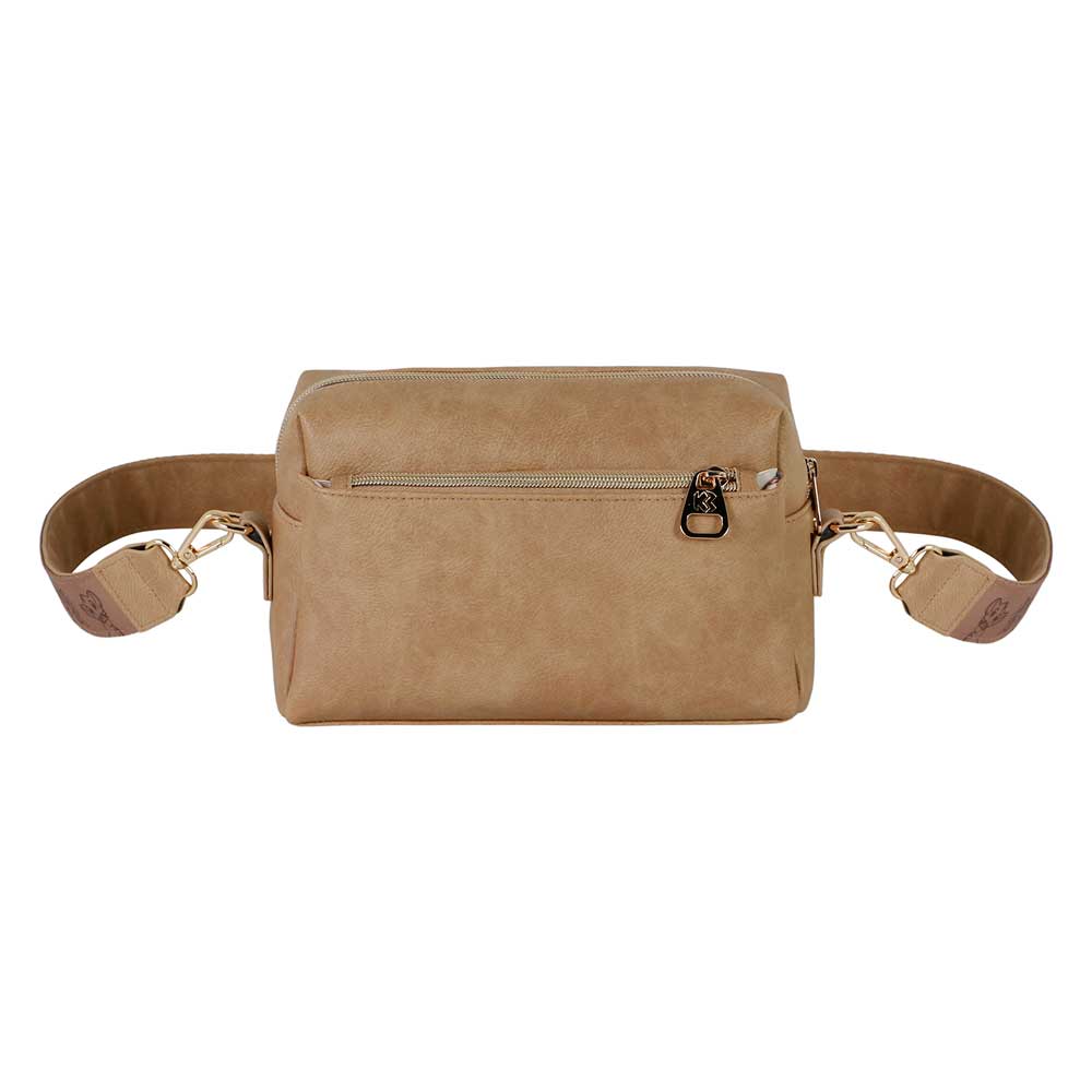 Borsa rettangolare con un comparto con cerniera. Due tasche esterne aggiuntive con cerniera, una sul davanti e una sul retro. Interno con due piccole tasche, una delle quali con cerniera. Fodera interna stampata. Tracolla regolabile di 100 cm di lunghezza.