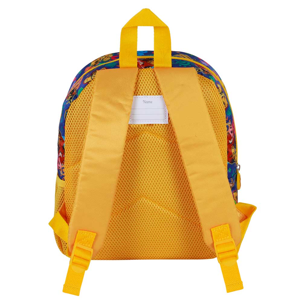 Zainetto prescolare a scomparto unico. Design frontale in rilievo e tasca laterale in rete. Schienale e spallacci imbottiti. Include una targhetta con il nome sul retro.