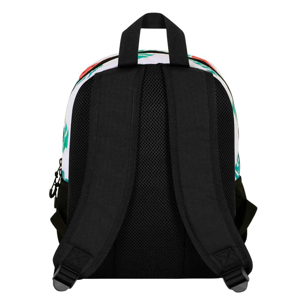 Zainetto piccolo con uno scomparto principale, tasca frontale piatta con cerniera e due tasche laterali in rete. Corpo in materiale altamente resistente (Ripstop), repellente ai liquidi in quantità moderate. Fodera interna stampata. Spallacci imbottitieregolabili e schienale imbottito.