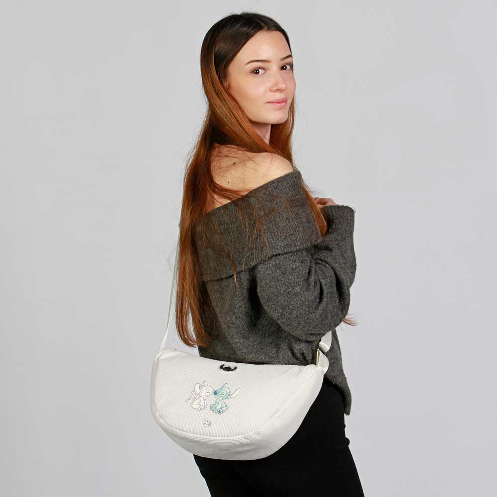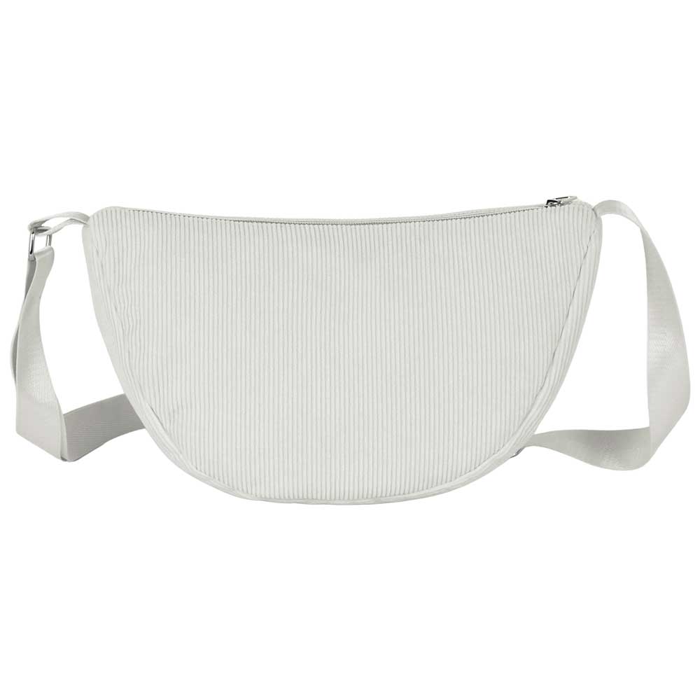 Borsa in velluto a coste con uno scomparto e una tasca interna, entrambi con chiusura a zip. Fodera interna e tracolla regolabile in base alle dimensioni desiderate.