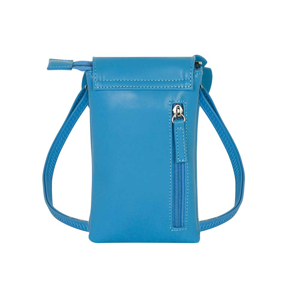 Piccola borsa per il trasporto del cellulare con due scomparti con cerniera superiore. Chiusura magnetica con patta e tasca frontale aperta. Fodera interna. Tracolla regolabile e rimovibile di 100 cm. Tasca di sicurezza sul retro.