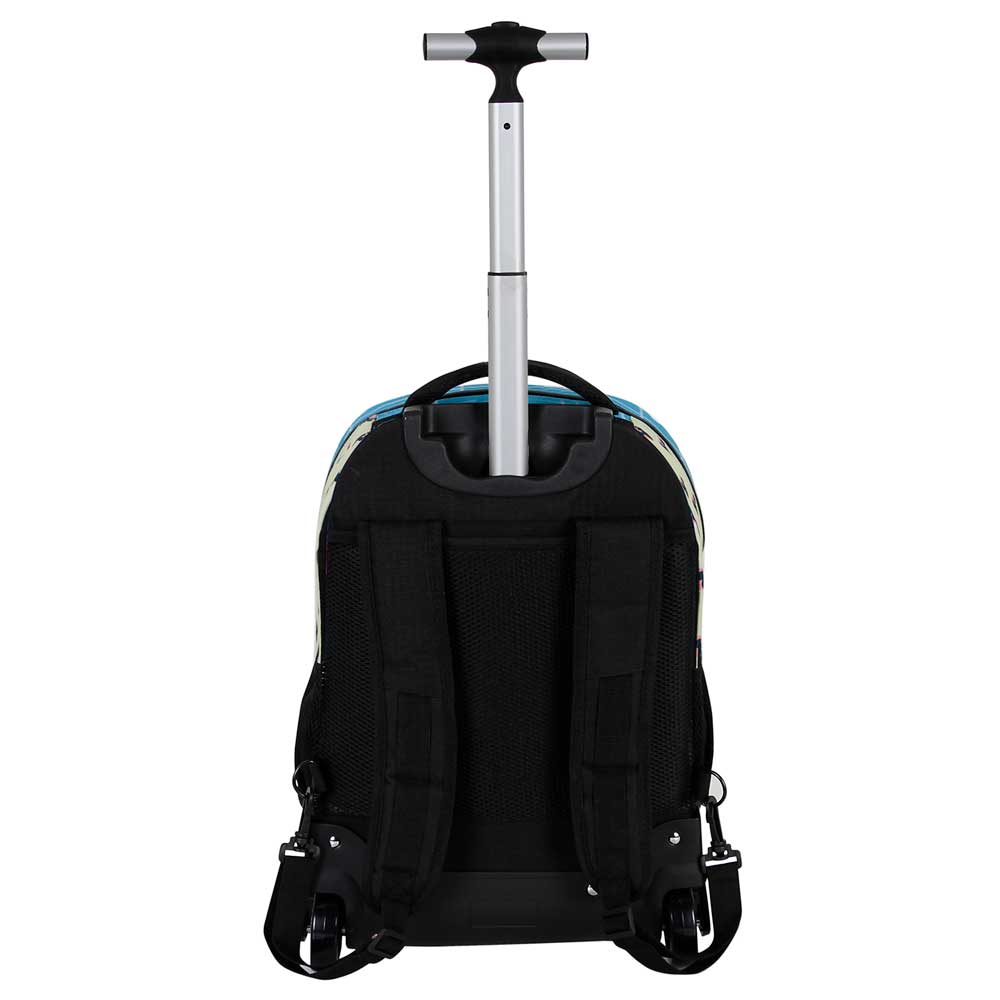 Zaino scuola con 2 ruote integrate. Due scomparti, una tasca frontale e due tasche laterali in rete. Interno foderato con tasca imbottita per dispositivi elettronici. Tracolle da portare come zaino.