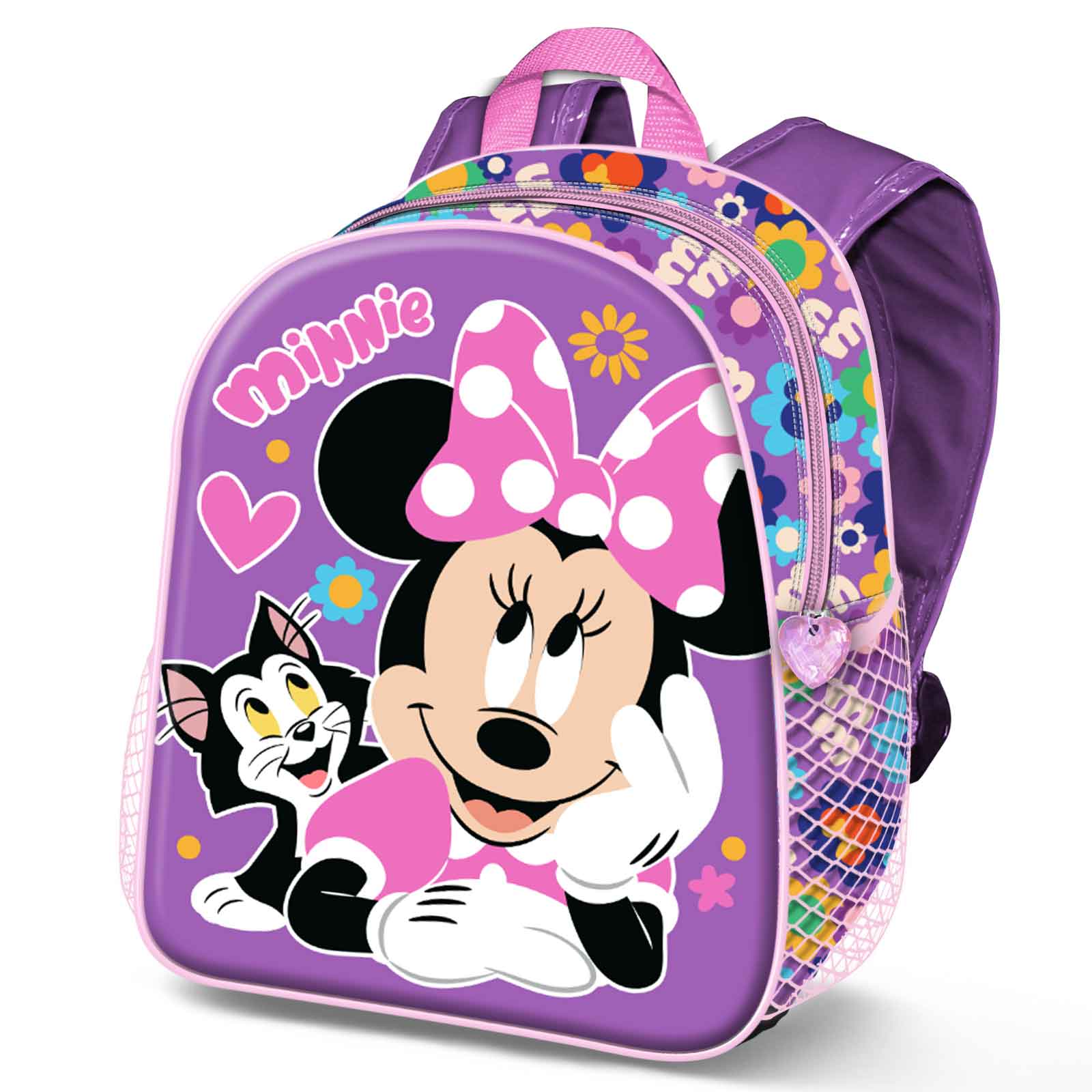 Zainetto prescolare con rilievo frontale 3D. Scomparto principale con cerniera e rivestimento interno. Due tasche laterali in rete.