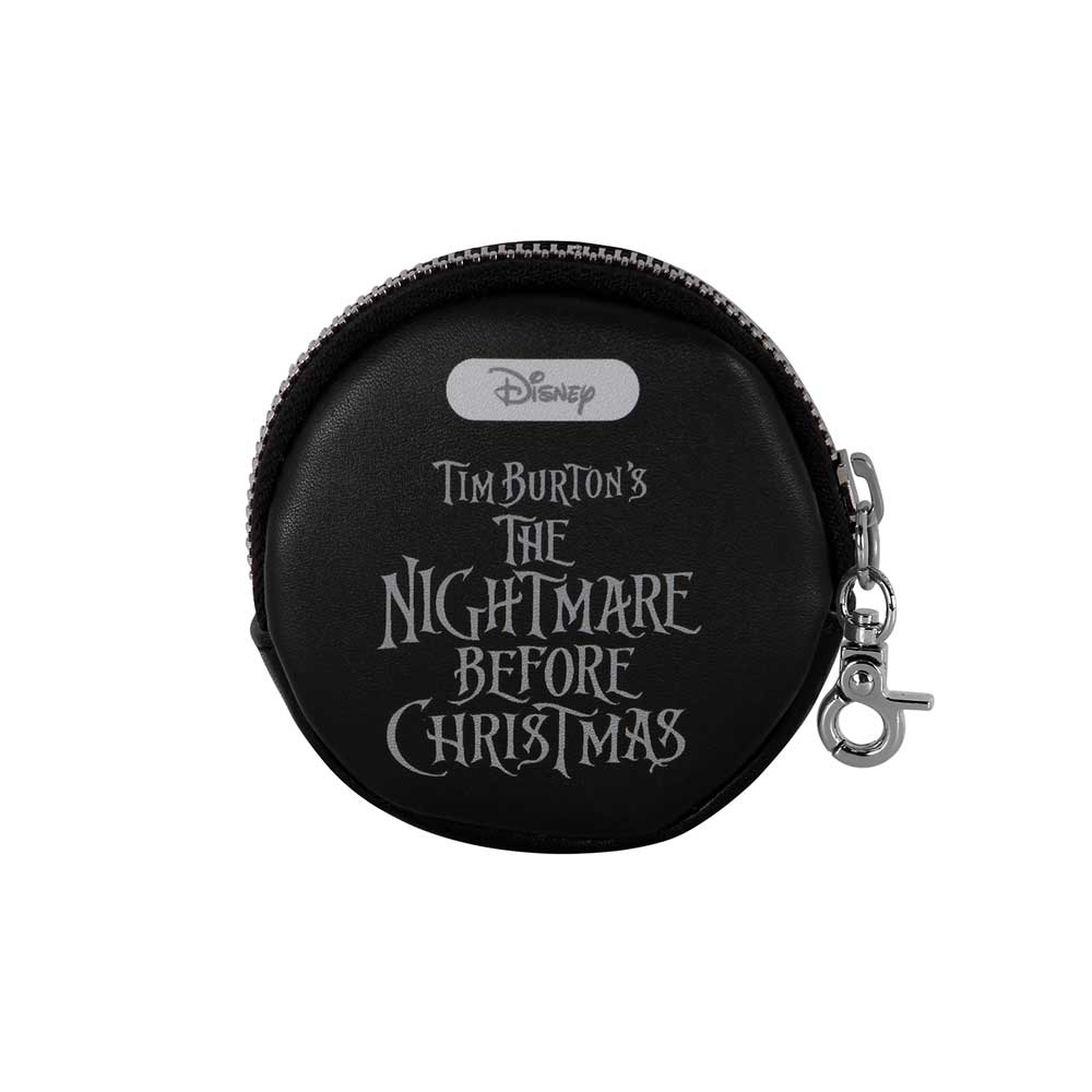 Portamonete rotondo con un unico scomparto e chiusura con zip. Fodera interna e anello da agganciare alla borsa.