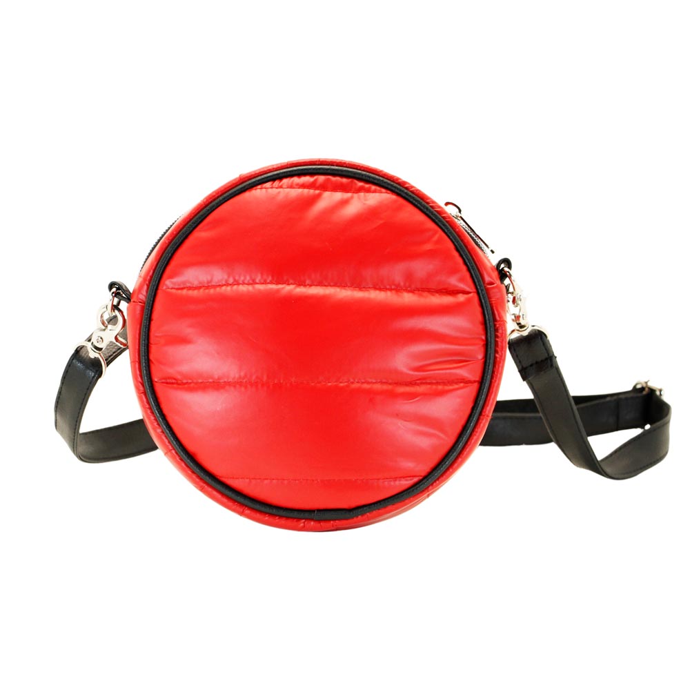 Borsa rotonda con scomparto con cerniera. Corpo esterno in materiale imbottito e fodera interna. Tracolla removibile e regolabile lunga 125cm.
