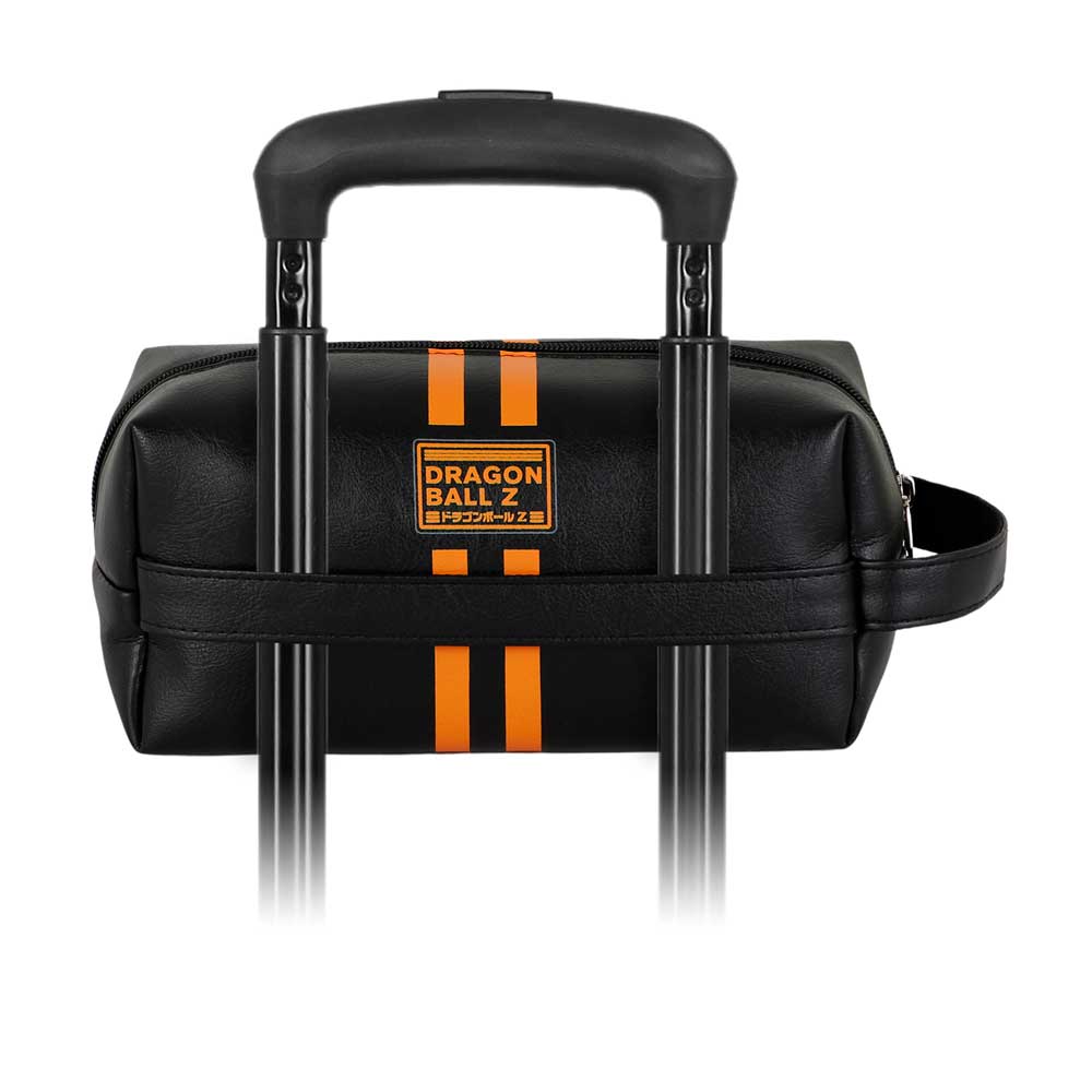 Borsa da toilette da viaggio con maniglia posteriore per un comodo trasporto su trolley. Uno scomparto con cerniera e fodera interna e tasca aperta in rete. Maniglia laterale.