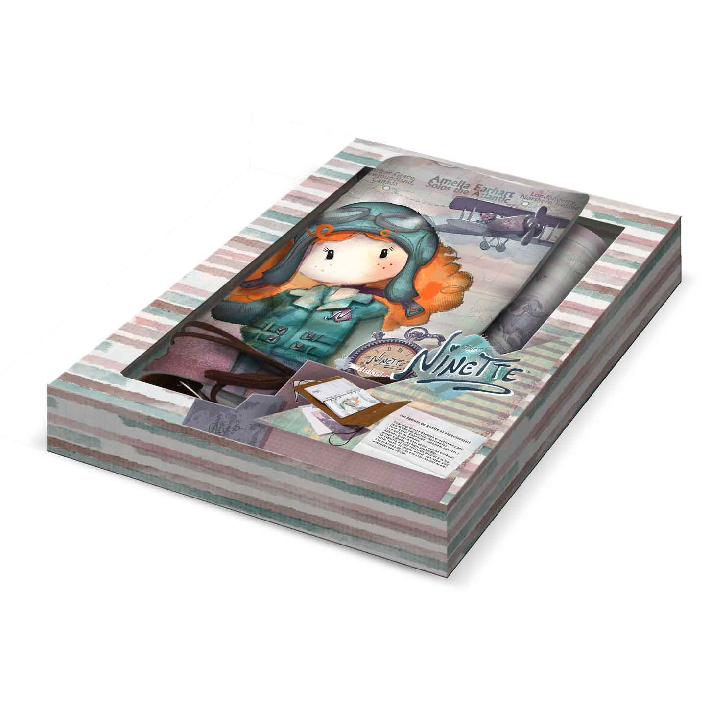 Agenda annuale con copertina morbida, chiusa da un bottone magnetico e da un cordoncino. Testo interno in inglese e fogli decorativi. Scatola inclusa.
