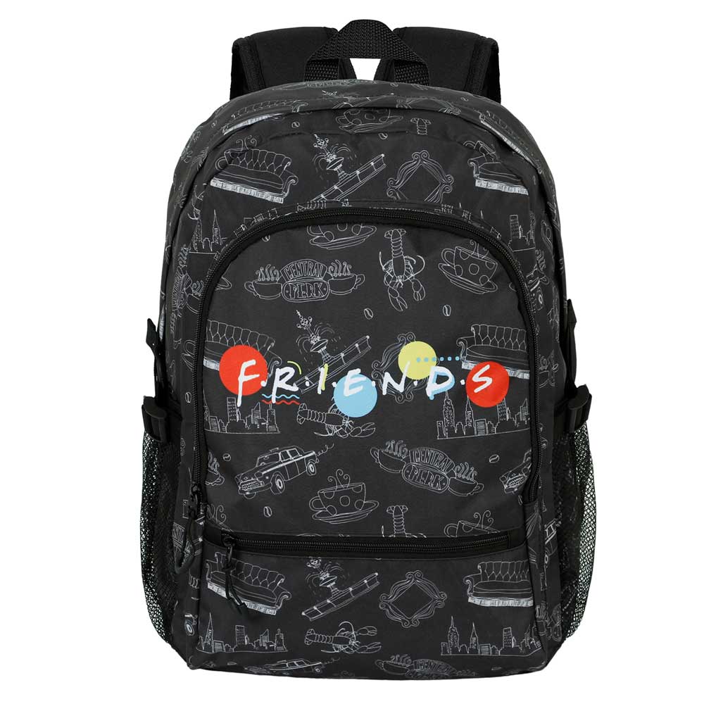 Zaino urbano leggero con scomparto singolo e due tasche anteriori. Spallacci imbottiti regolabili, due tasche laterali in rete e tracolla posteriore. Interno foderato e tasca imbottita per dispositivi elettronici.