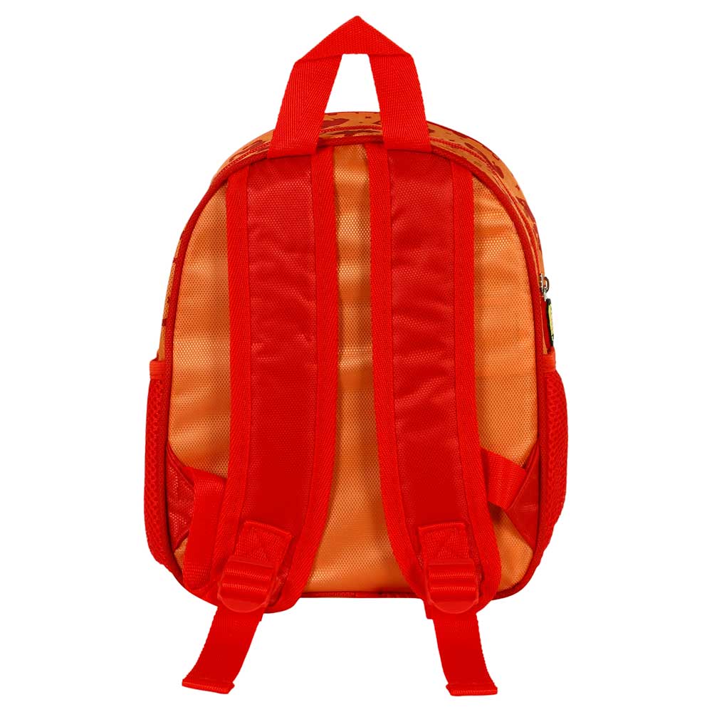 Zaino prescolare con uno scomparto chiuso con cerniera. Tasca frontale goffrata e due tasche laterali in rete.