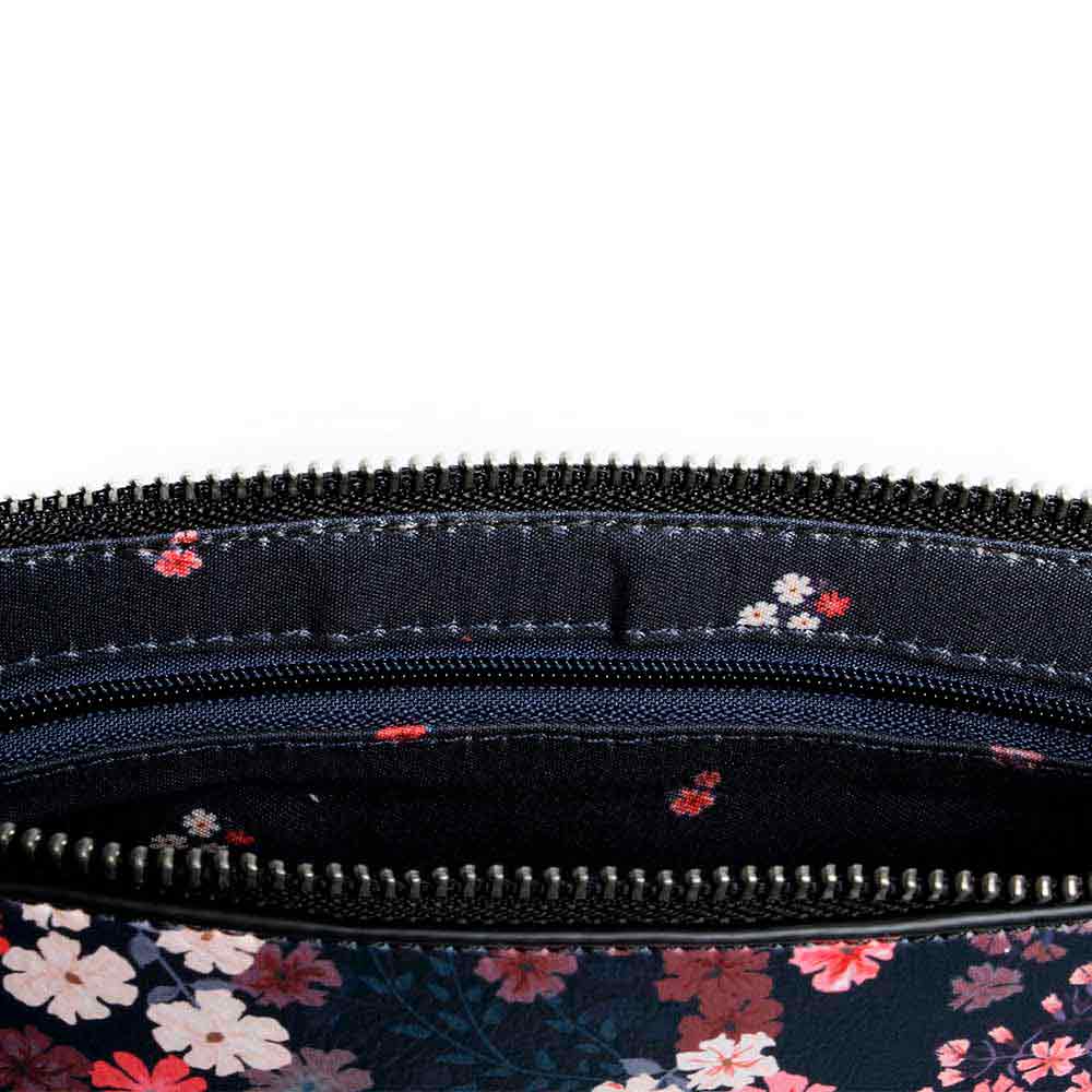 Borsa a tracolla a scomparto unico. Corpo decorato chiuso con cerniera. Include una tracolla regolabile da 140 cm, una catena da 47 cm e una fodera interna con tasca.