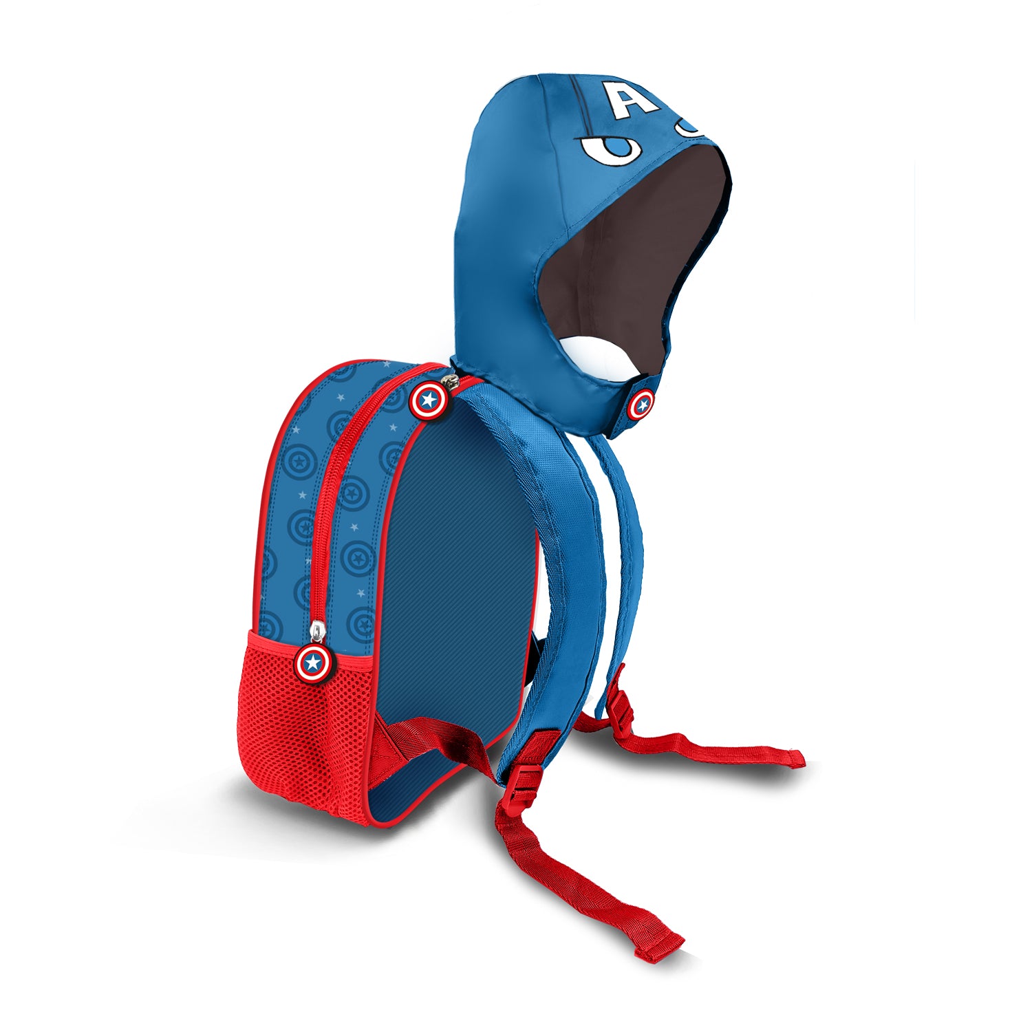 Zainetto per bambini con uno scomparto e cappuccio da costume integrato, non rimovibile. Cappuccio con stampa di personaggi, a seconda del modello, con chiusura a velcro. Tasca con cerniera accanto alla maniglia superiore per riporre il cappuccio quandonon viene utilizzato. Spallacci imbottiti e regolabili.