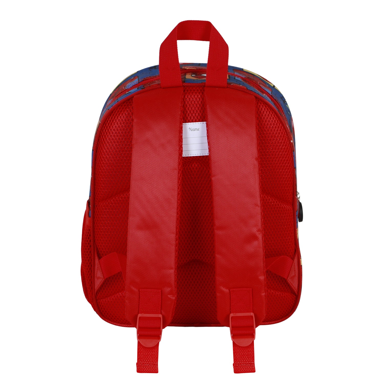 Zainetto prescolare a scomparto unico. Design frontale in rilievo e tasca laterale in rete. Schienale e spallacci imbottiti. Include una targhetta con il nome sul retro.