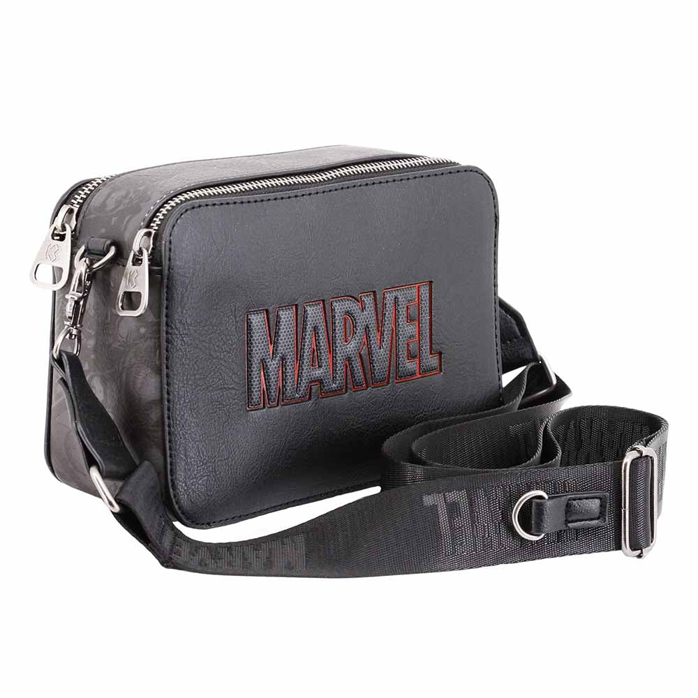 Borsa a tracolla a scomparto unico. Corpo decorato chiuso con due cerniere. Tracolla regolabile lunga 160 cm.