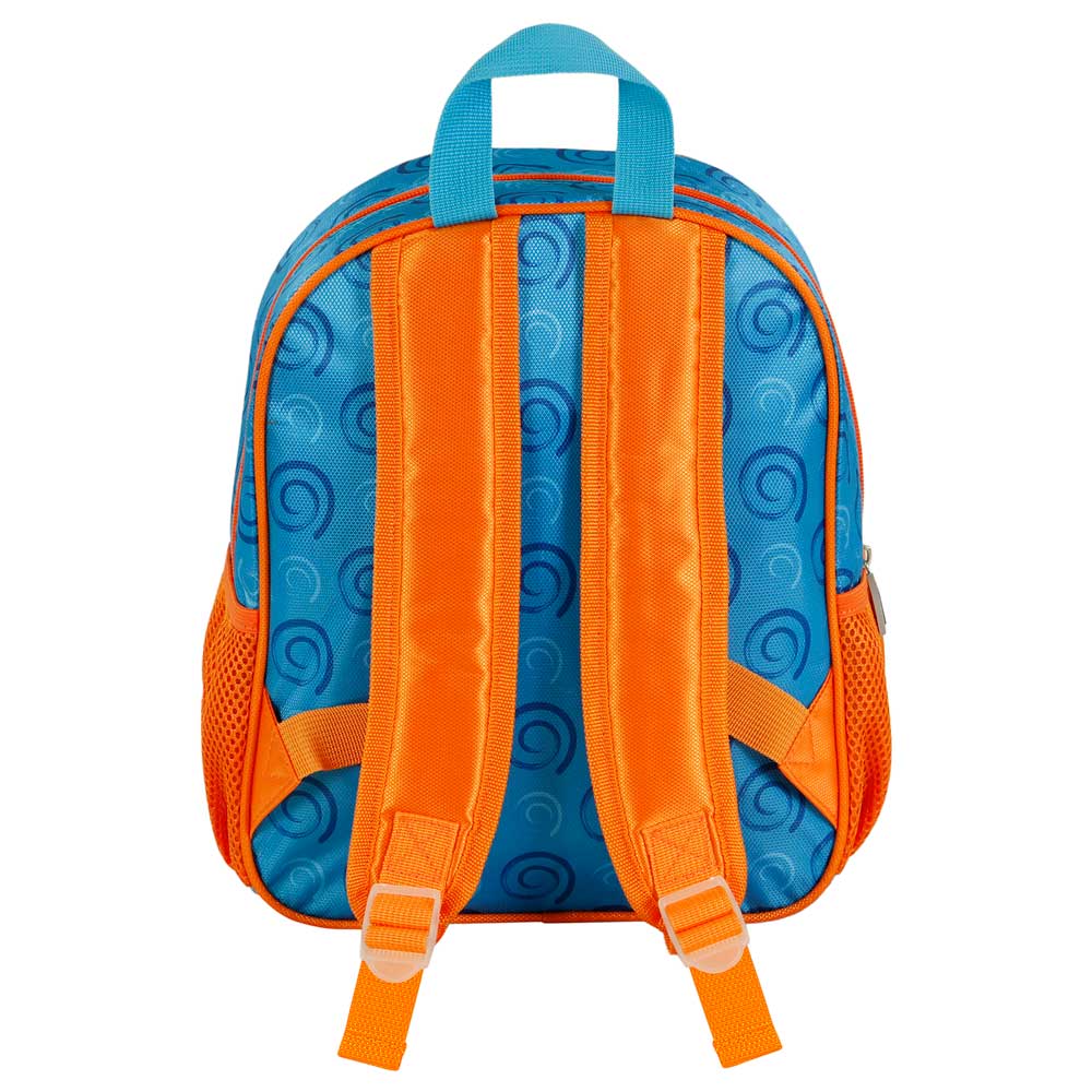 Zainetto prescolare con rilievo frontale 3D. Scomparto principale con cerniera e rivestimento interno. Due tasche laterali in rete.