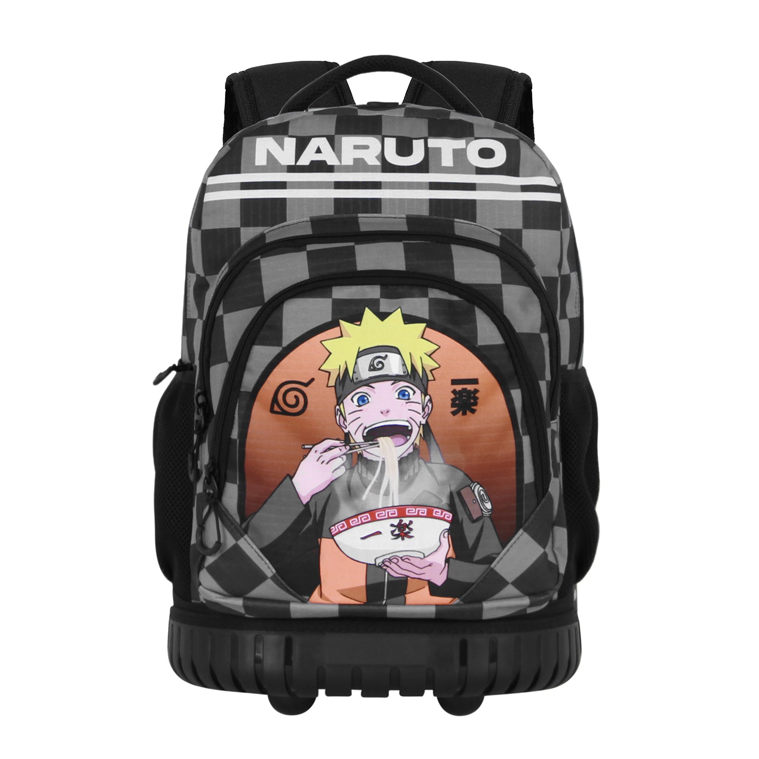 Zaino scuola con 2 ruote integrate. Due scomparti, una tasca frontale e due tasche laterali in rete. Interno foderato con tasca imbottita per dispositivi elettronici. Tracolle da portare come zaino.