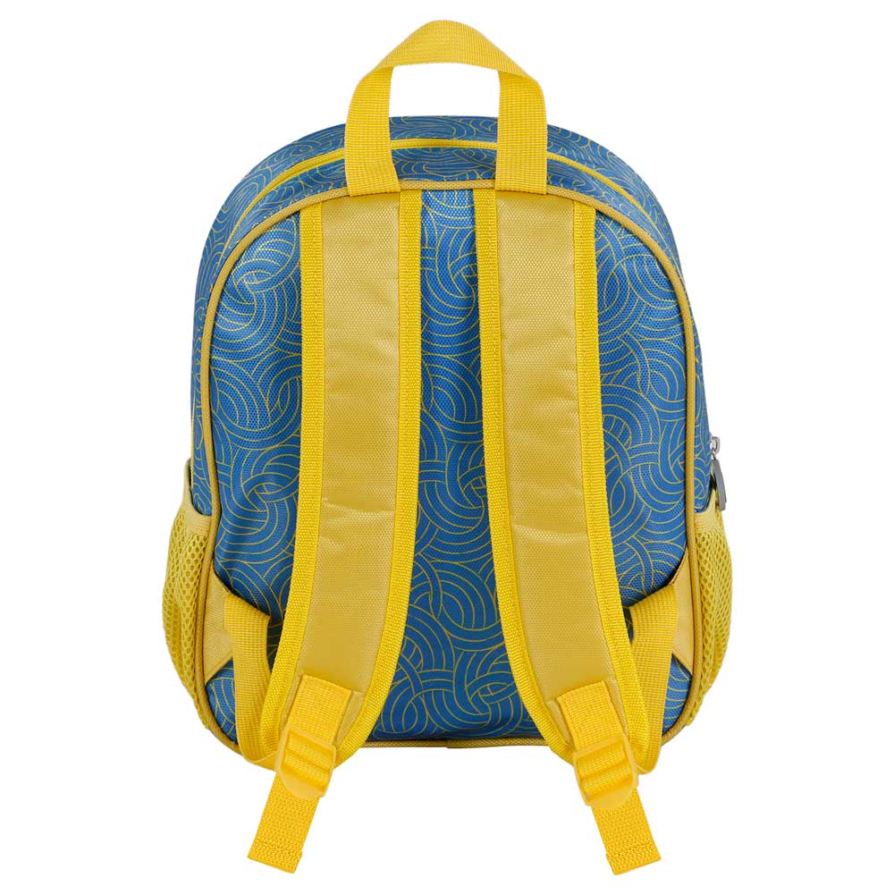 Zainetto prescolare con rilievo frontale 3D. Scomparto principale con cerniera e rivestimento interno. Due tasche laterali in rete.