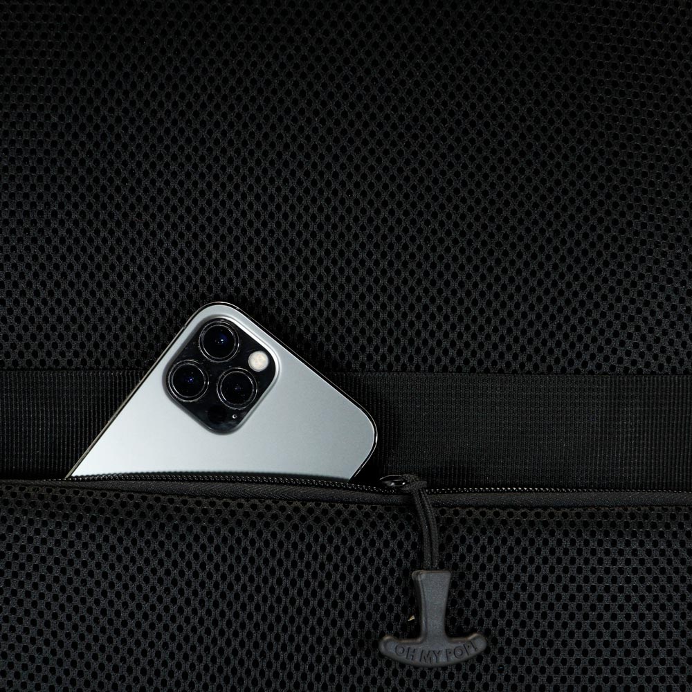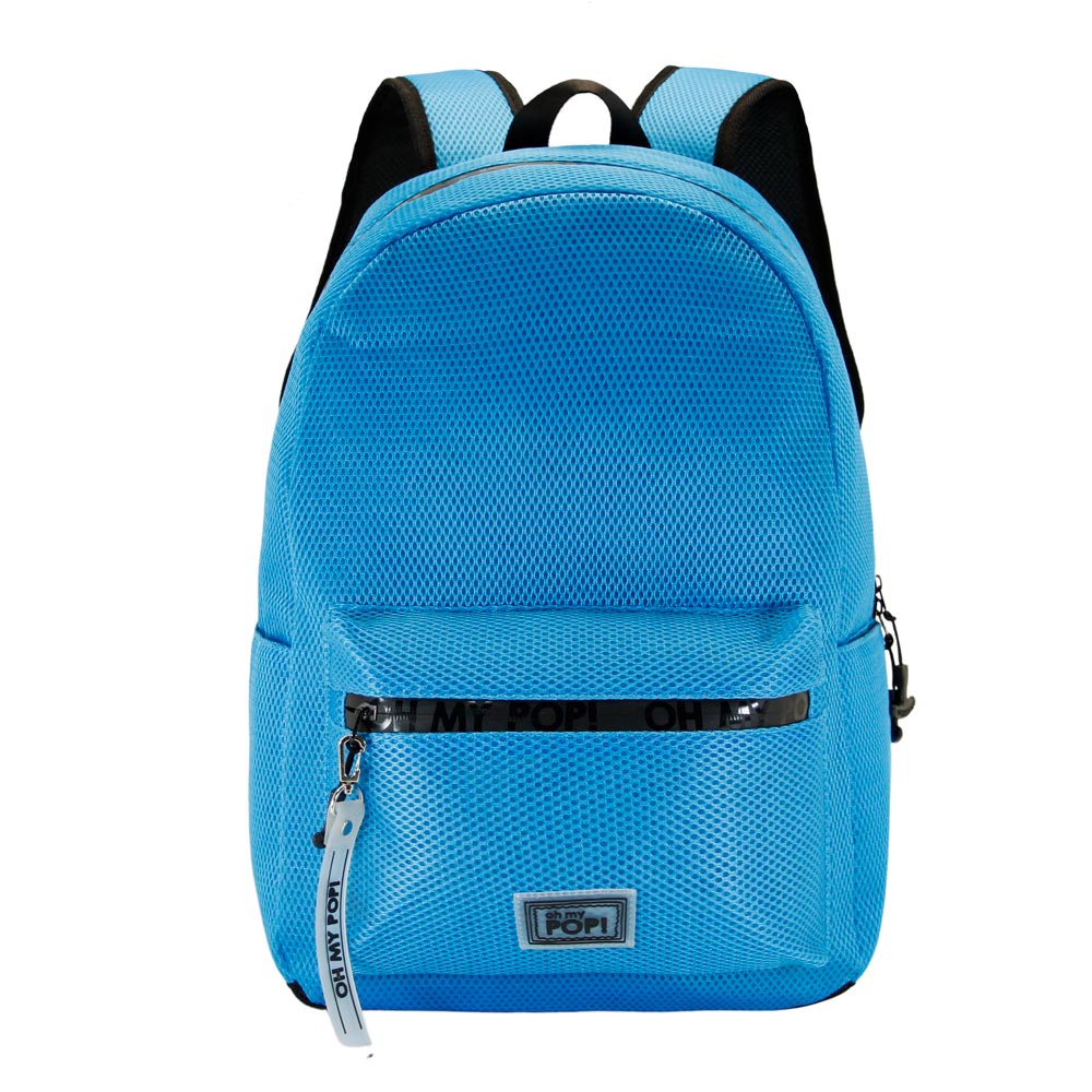 Zaino urbano realizzato in leggerissima rete di poliestere. Ha uno scomparto principale, una tasca frontale, 2 tasche laterali aperte, una tasca posteriore nascosta e tracolla per trolley. Fodera interna con tasca imbottita.