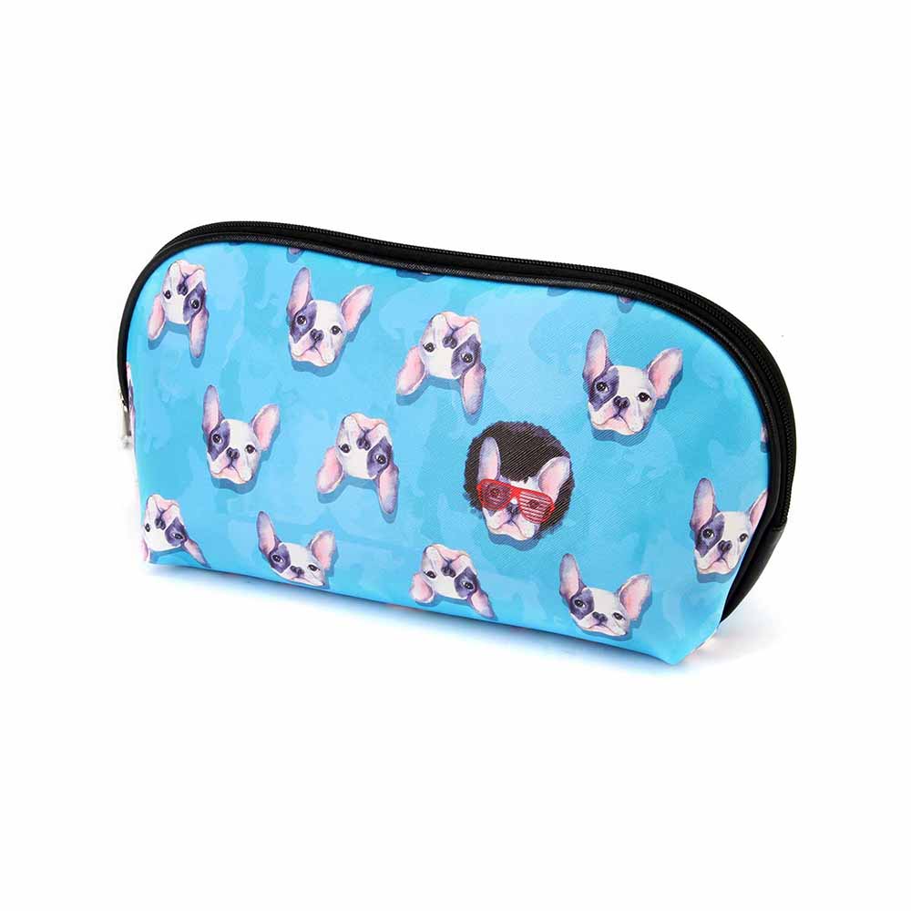Beauty case per prodotti per l'igiene personale. Chiusura superiore con cerniera e fodera interna con tasca chiusa.