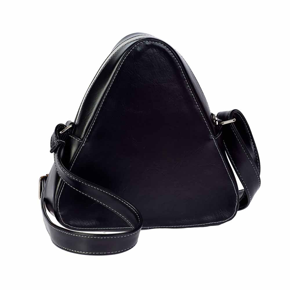 Attenzione! Borsa triangolare a forma di segnale di avvertimento di grande capacità interna. Scomparto unico chiuso con zip. Manico regolabile 120 cm. Fodera interna.