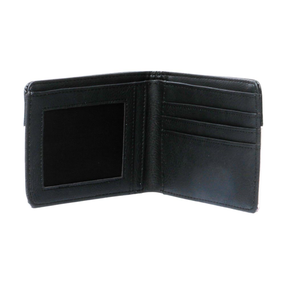 Portafoglio con tasca centrale per banconote e 5 slot per carte di credito. Finestra trasparente in una delle tasche interne per foto e carte d'identità.
