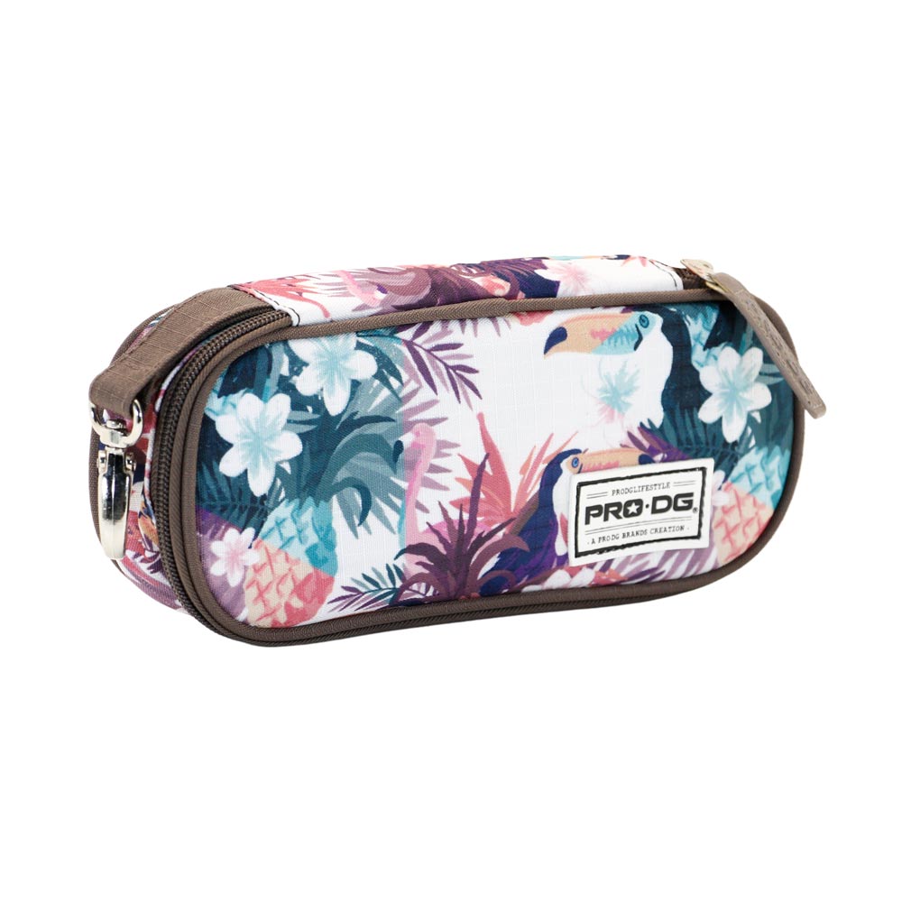 Astuccio di matite con un vano principale che include gli organizzatori per matite e spazzole. Tasca interna e maniglia laterale esterna.