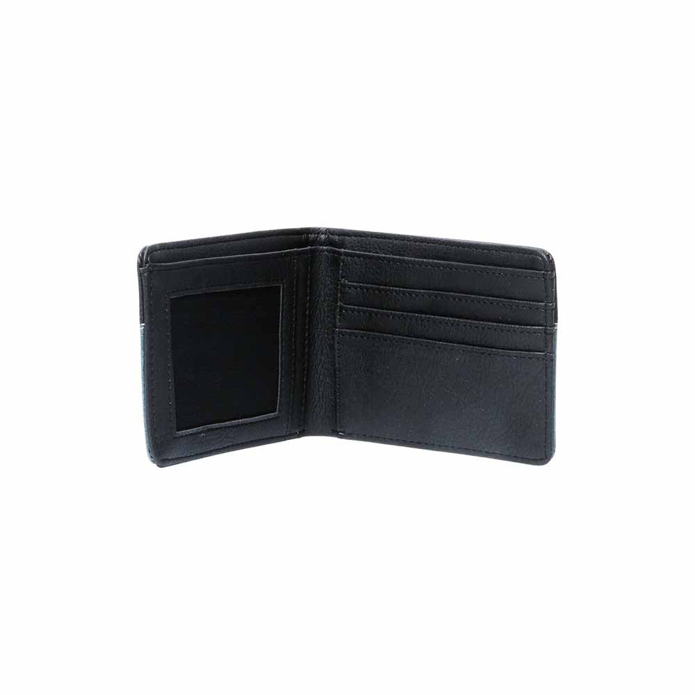 Portafoglio con tasca centrale per banconote e 5 slot per carte di credito. Finestra trasparente in una delle tasche interne per foto e carte d'identità.