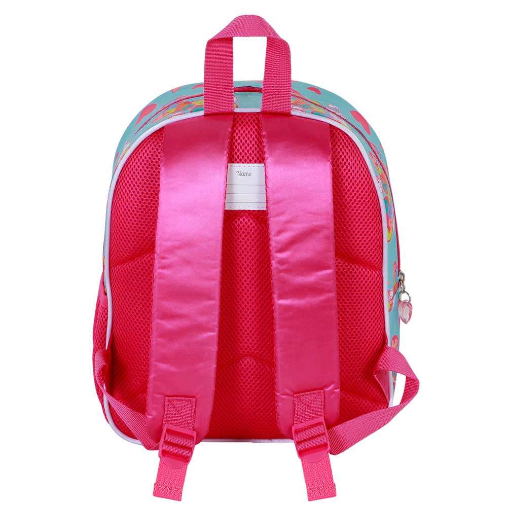 Zainetto prescolare a scomparto unico. Design frontale in rilievo e tasca laterale in rete. Schienale e spallacci imbottiti. Include una targhetta con il nome sul retro.