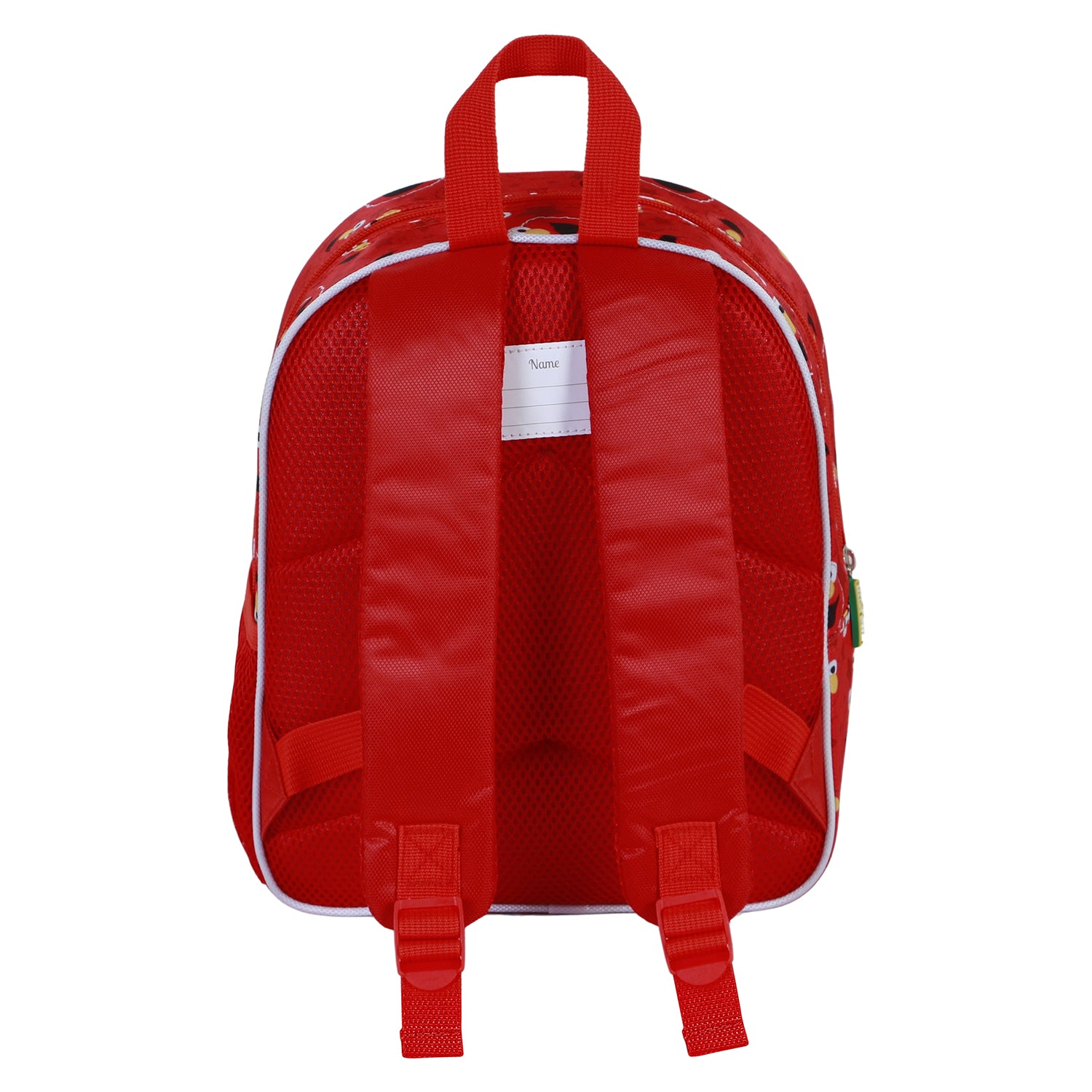 Zainetto prescolare a scomparto unico. Design frontale in rilievo e tasca laterale in rete. Schienale e spallacci imbottiti. Include una targhetta con il nome sul retro.