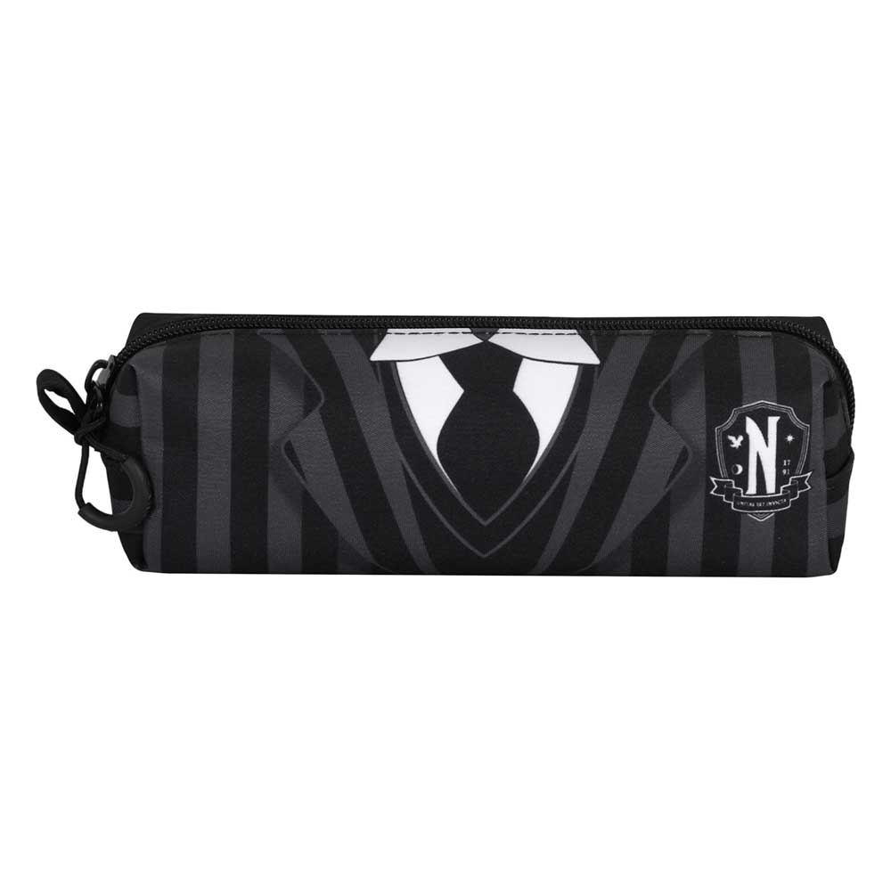 Astuccio a profilo quadrato con un unico scomparto e chiusura con cerniera.