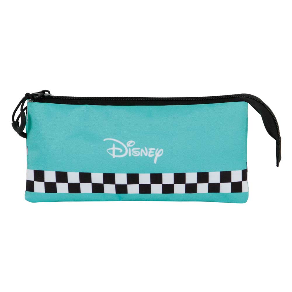 Estuche portatodo rectangular con tres compartimentos para tus pertenencias. Los dos bolsillos exteriores se abren con la cremallera principal y el tercero con una propia.