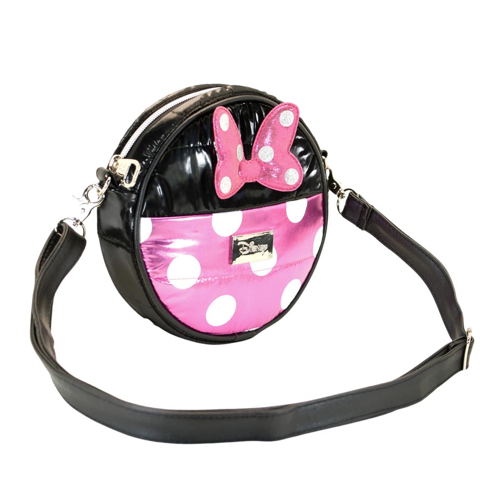 Bolso redondo de un compartimento cerrado con cremallera. Exterior de material acolchado e interior con forro. Correa al hombro extraible y ajustable de 125cm de largo.