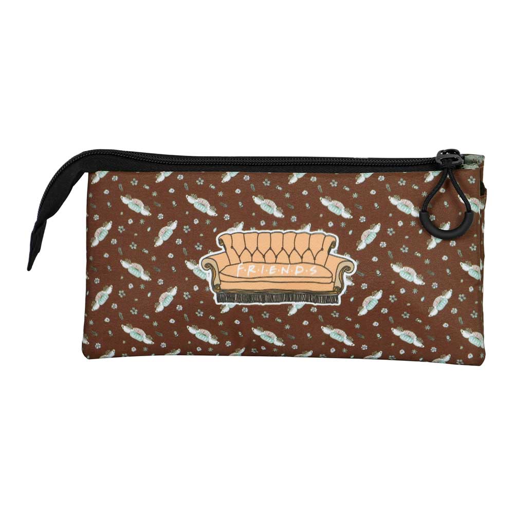 Estuche portatodo rectangular con tres compartimentos para tus pertenencias. Los dos bolsillos exteriores se abren con la cremallera principal y el tercero con una propia.